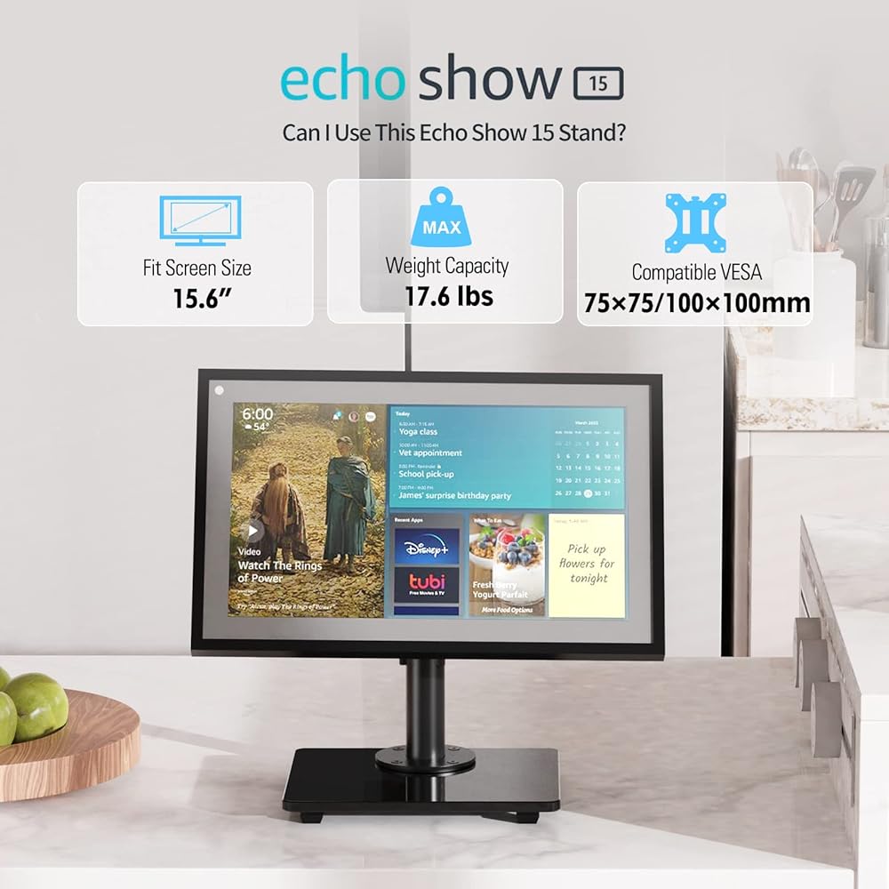 ماونت برو حامل ايكو شو 15، حامل مكتب قائم بذاته لامازون ايكو شو 15، حامل دوار وامالة ودوران مع قاعدة من الزجاج المقسى، ارتفاع قابل للتعديل اليكسا ايكو شو 15، يحمل ما يصل الى 18.6 باوند