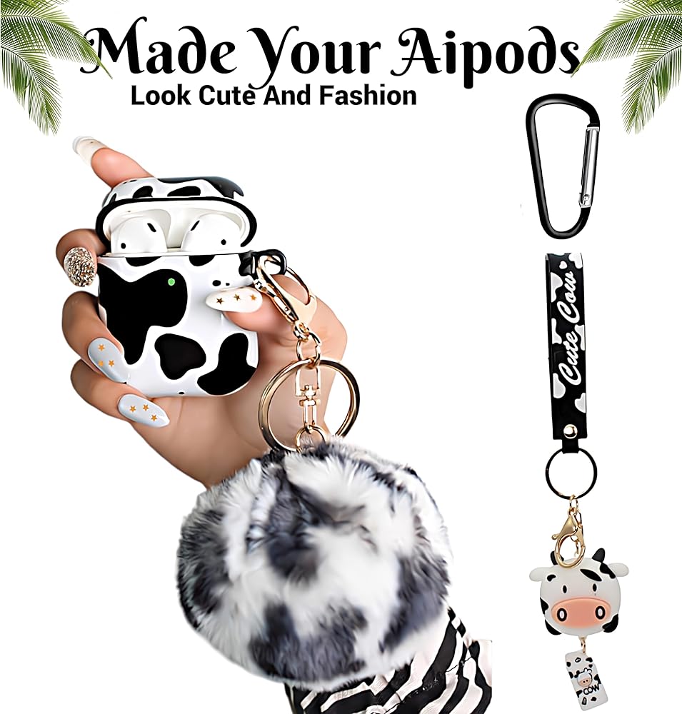 【Pack of Two Case for Airpods Case】 2 Case Heart Print Airpods Case With Beautiful Keychain ,the Case is it specifically designed for Aipods 1 & Airpods 2 Second Generations Perfect Fit.