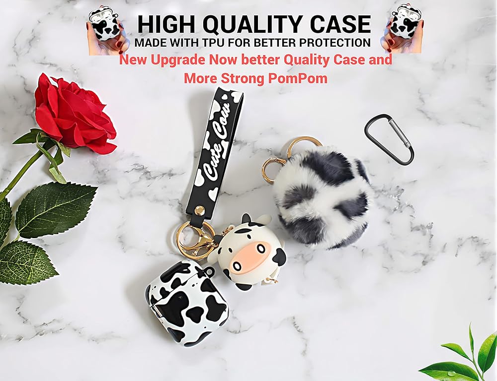 【What Do You Get】:(2Pack Case) 1-Black Case And 1-Pink Case For Airpods Case With 2 Luxury keychain and 2 Gokld ring