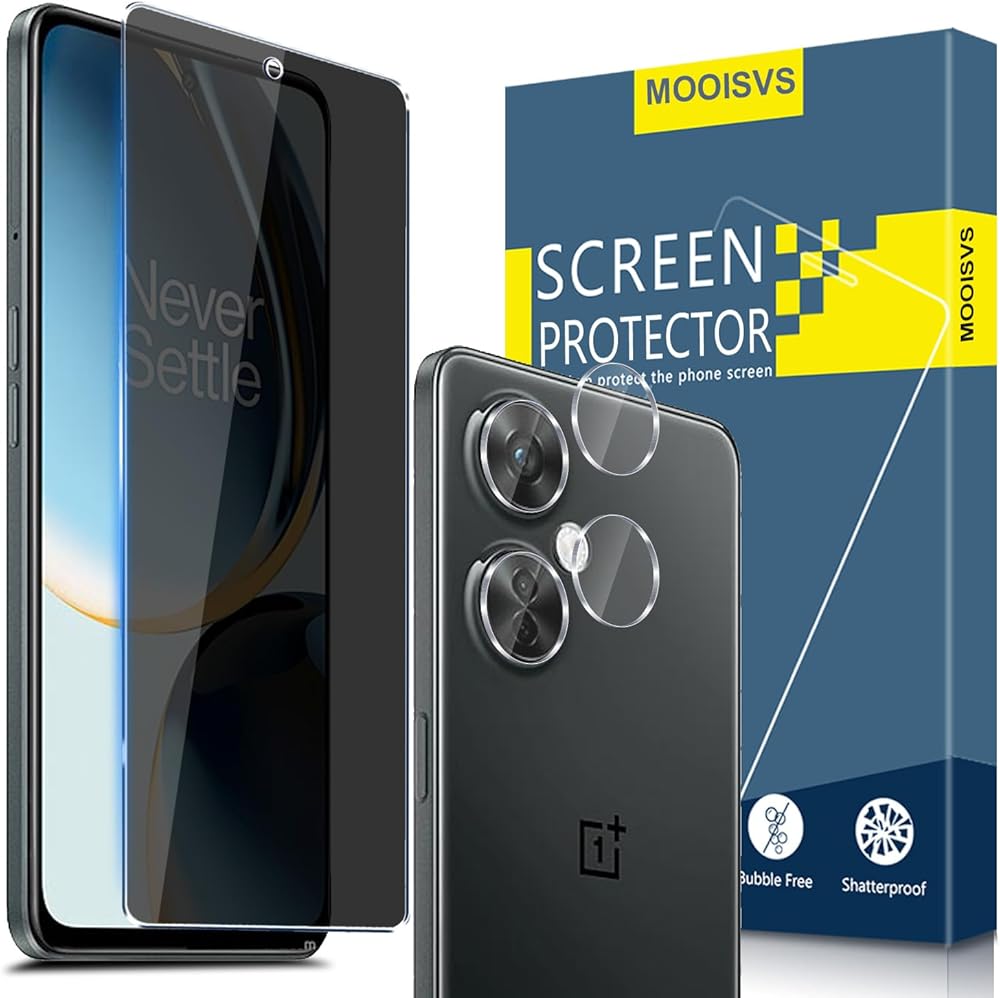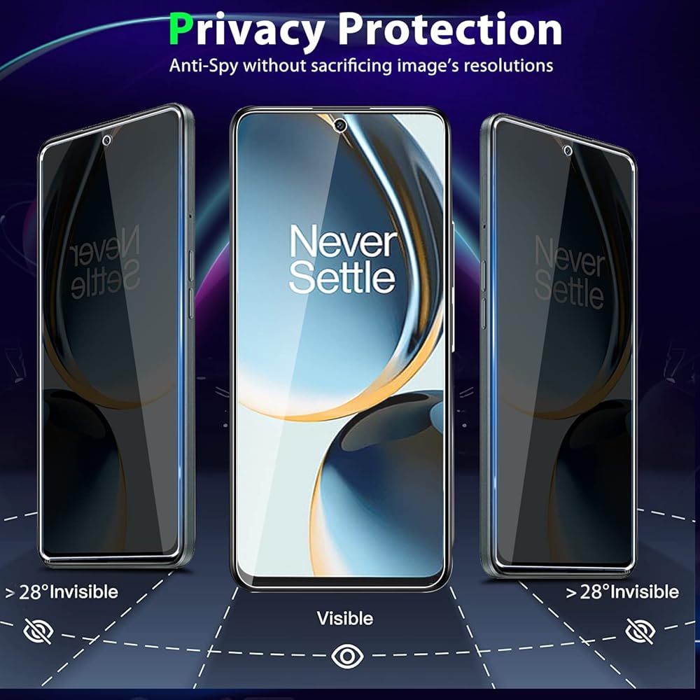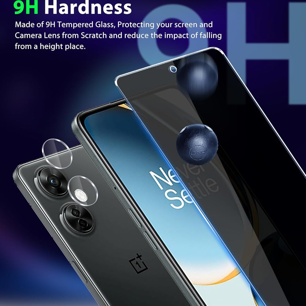 [متوافق مع التصميم] واقي شاشة وواقي عدسة الكاميرا لهاتف OnePlus N30 5G؛ يمكن أن يمنع واقي شاشة الخصوصية اختلاس النظر السري من الغرباء. إنه مرئي فقط للأشخاص الذين يواجهون الشاشة مباشرة ويحجب الرؤية من الجانب الأيسر والأيمن عند حوالي 45 درجة زاوية