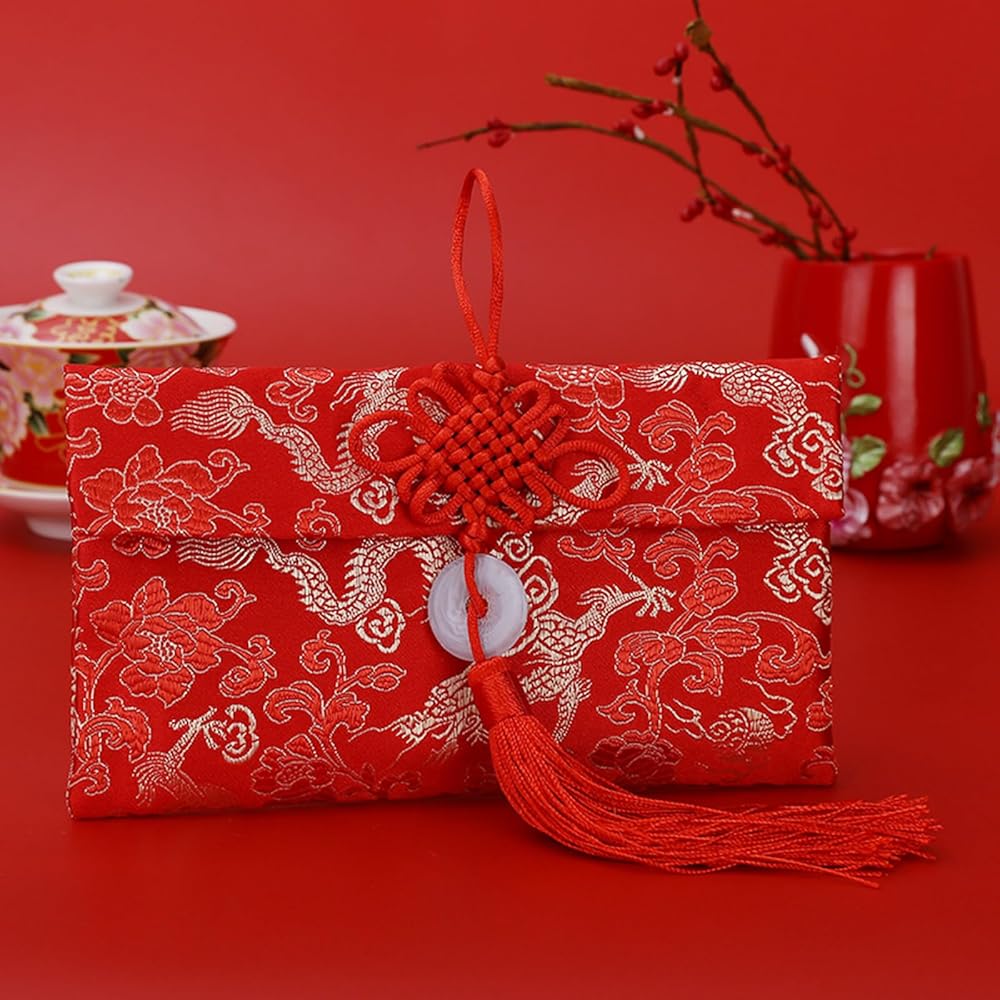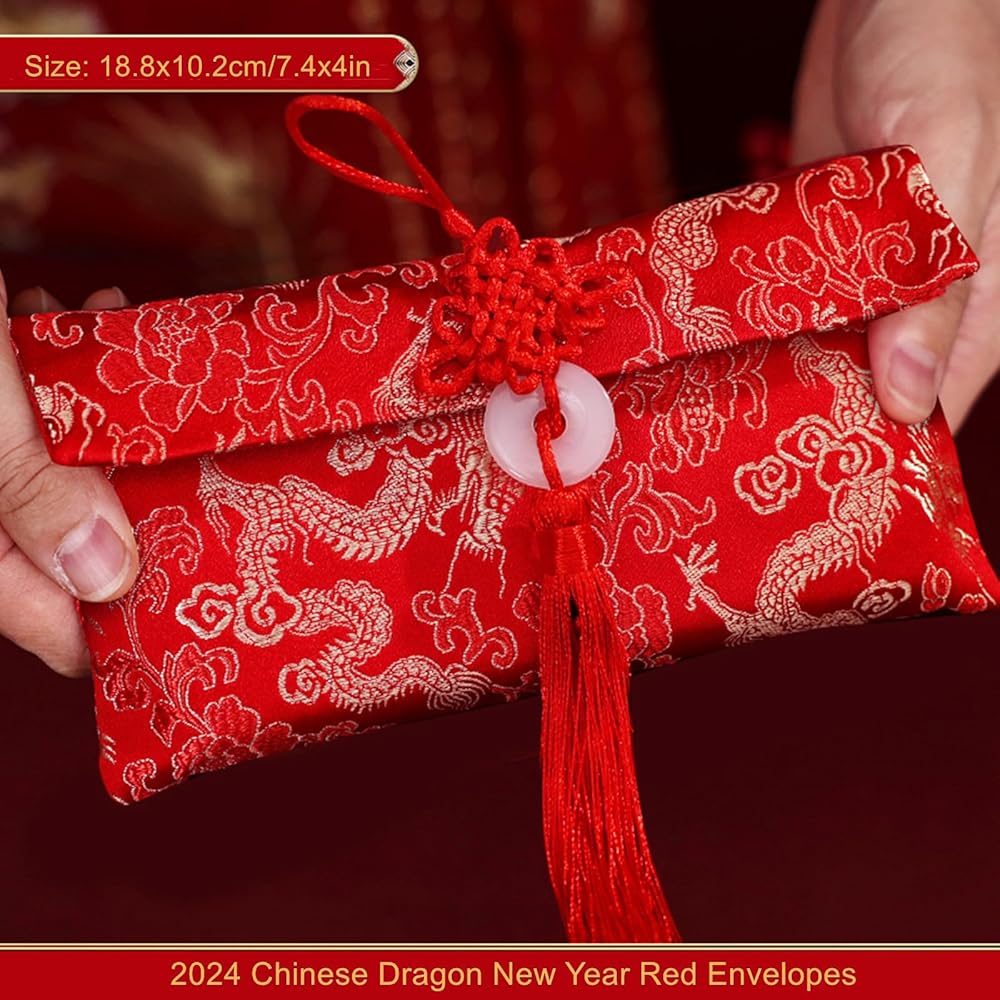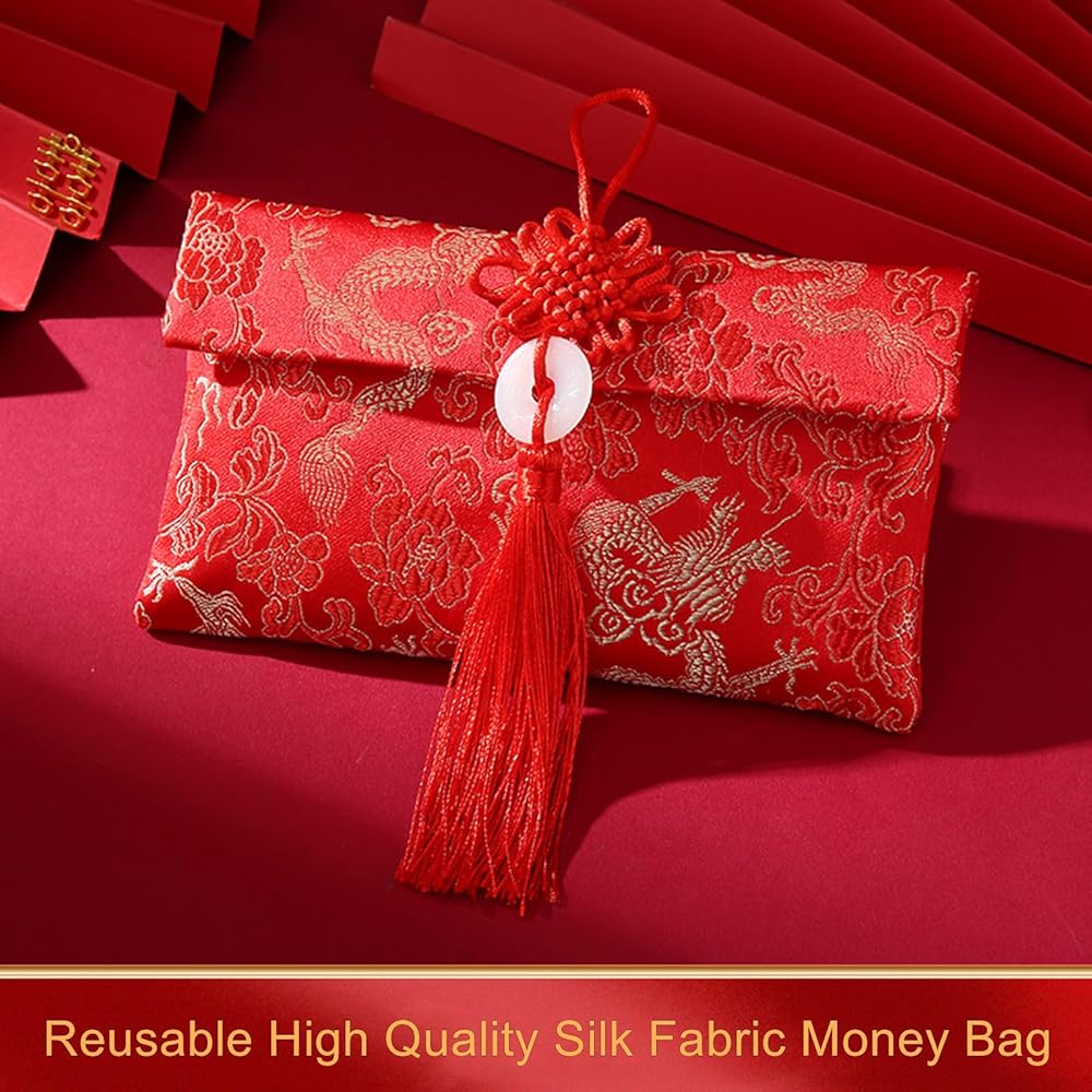 ايسوين مظاريف حمراء للعام الصيني الجديد 2024 من قماش الحرير، اكياس هدايا من القماش الحريري، جيوب للنقود والعملات المعدنية وحامل بطاقات الحظ لمستلزمات الربيع وحفلات الزفاف