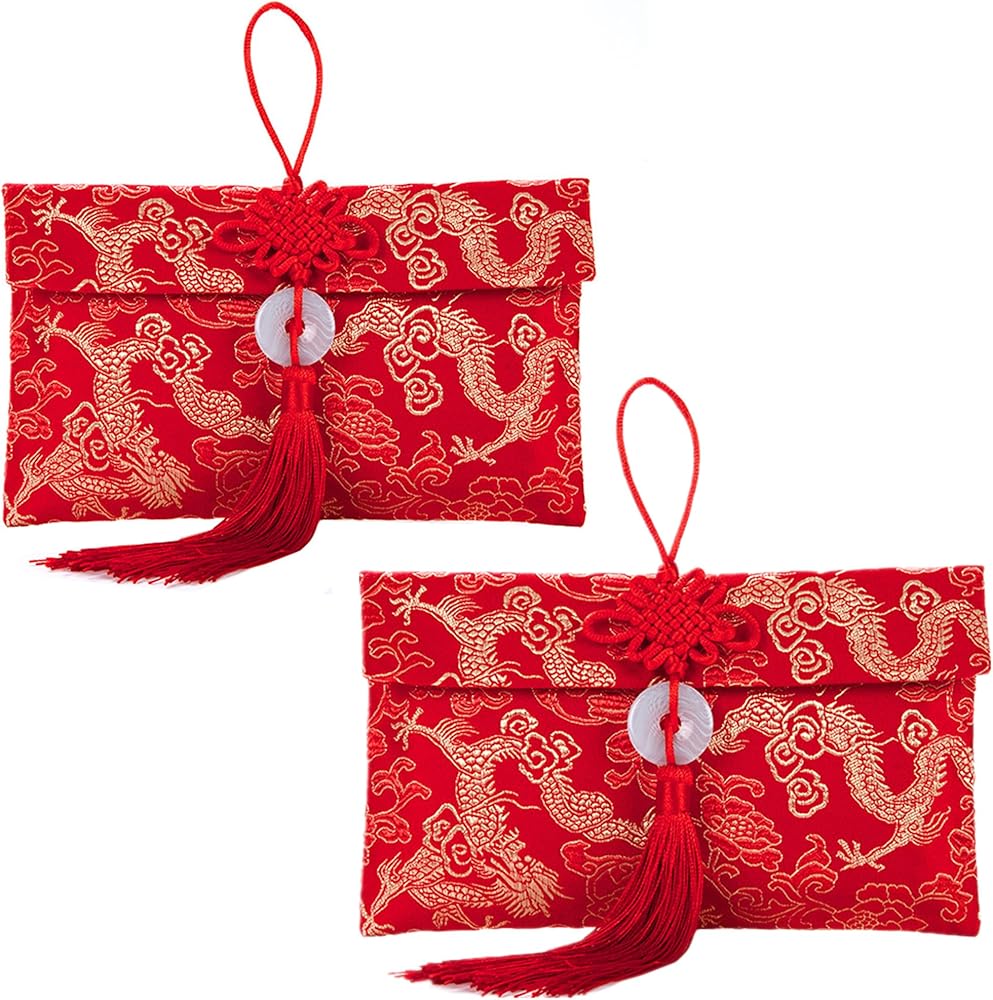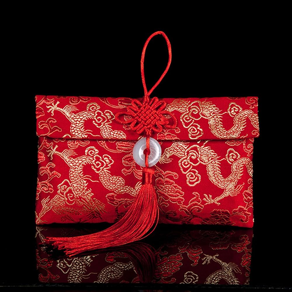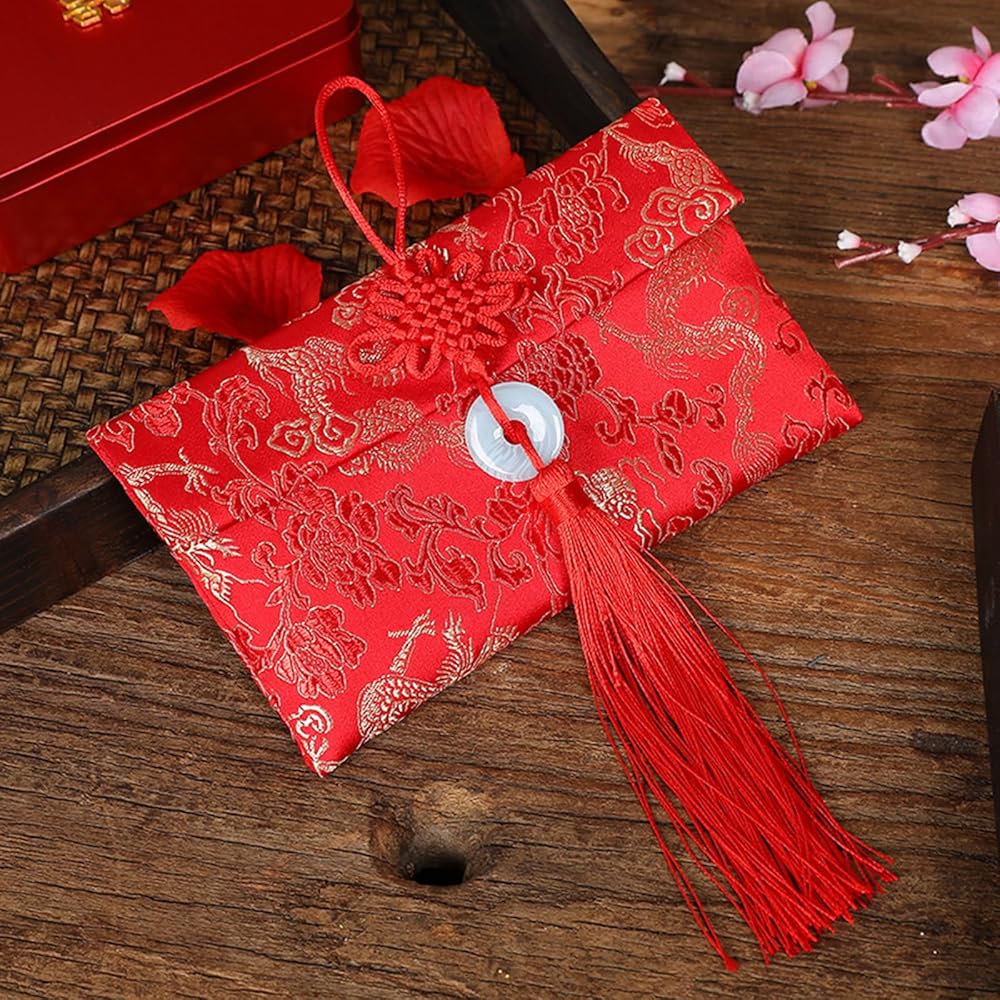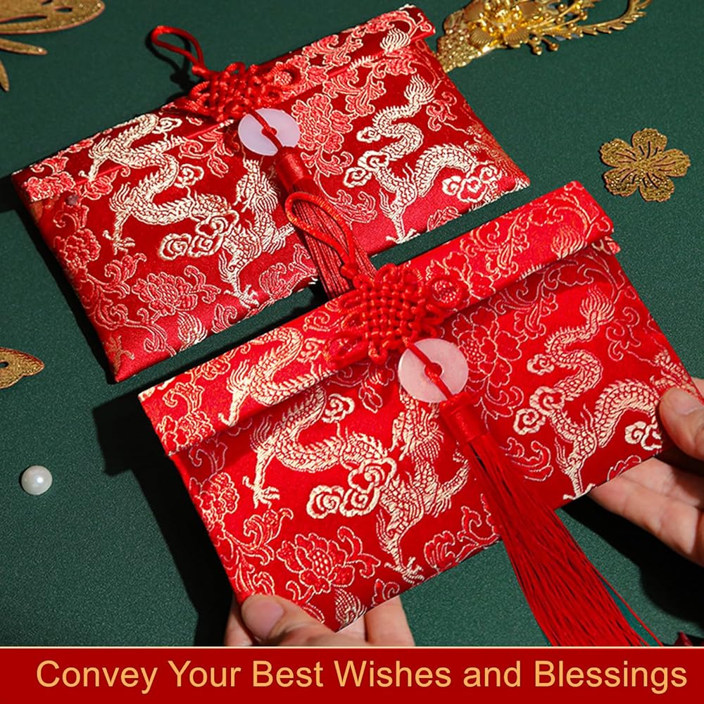 ايسوين مظاريف حمراء للعام الصيني الجديد 2024 من قماش الحرير، اكياس هدايا من القماش الحريري، جيوب للنقود والعملات المعدنية وحامل بطاقات الحظ لمستلزمات الربيع وحفلات الزفاف