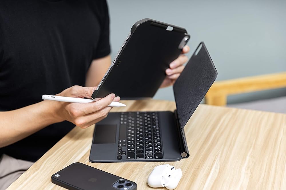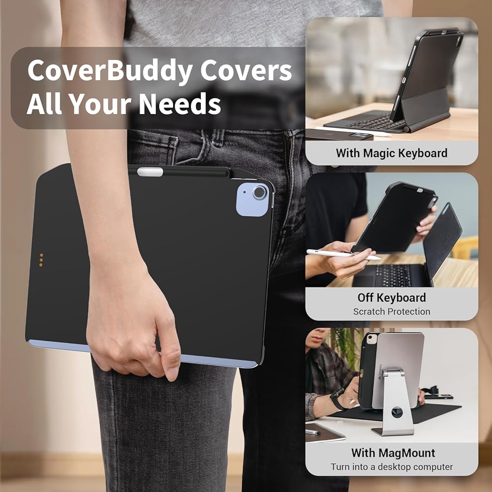 جراب مغناطيسي SWITCHEASY CoverBuddy 2022-2020 10.9 بوصة iPad Air 5 و4 وiPad Pro 11 بوصة، متوافق مع لوحة المفاتيح السحرية، مع حامل قلم رصاص يدعم شحن قلم Apple - أسود (لوحة المفاتيح غير متضمنة)