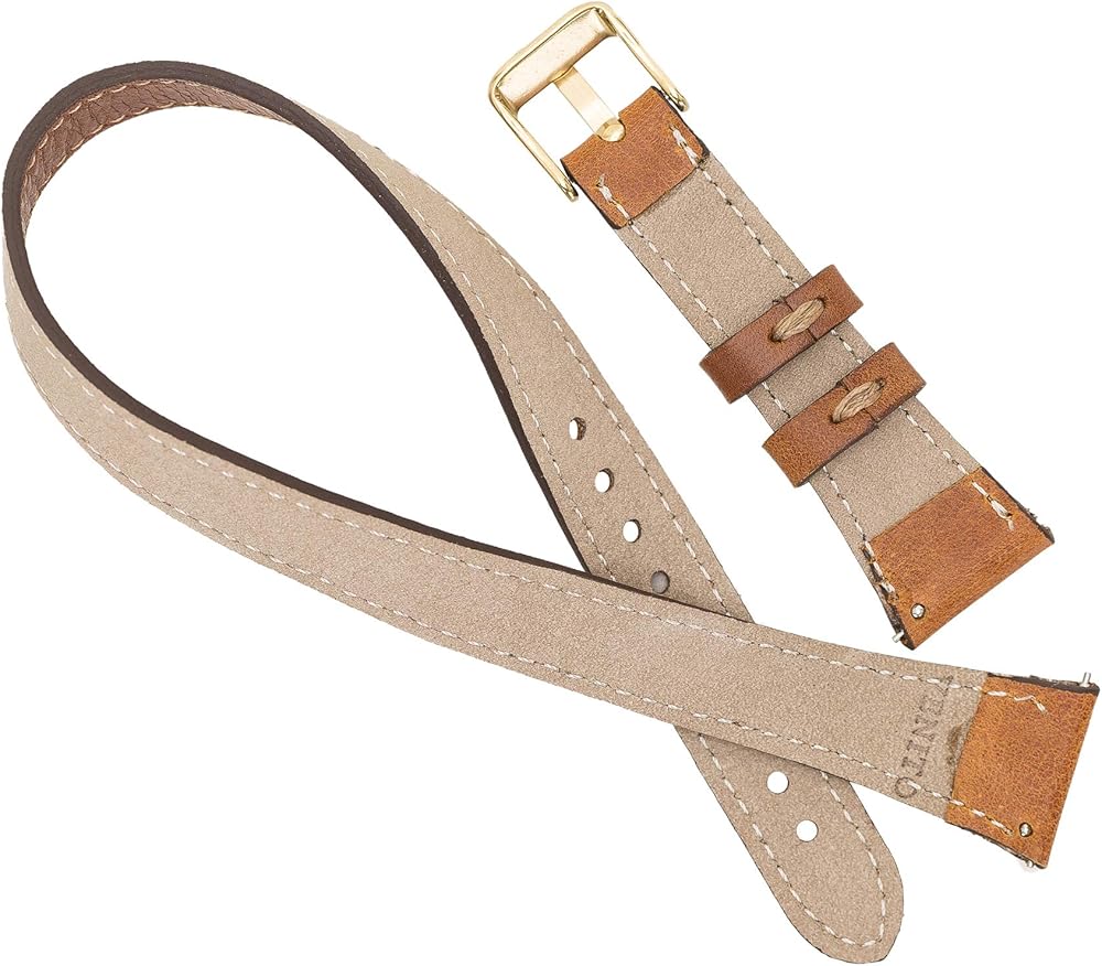 سوار ساعة Venito Serena من الجلد ذو غلاف مزدوج نحيف متوافق مع هاتف Samsung Galaxy Active/Active 2-20 مم من الجلد الأصلي بحزام ساعة نحيف مزدوج الجولة