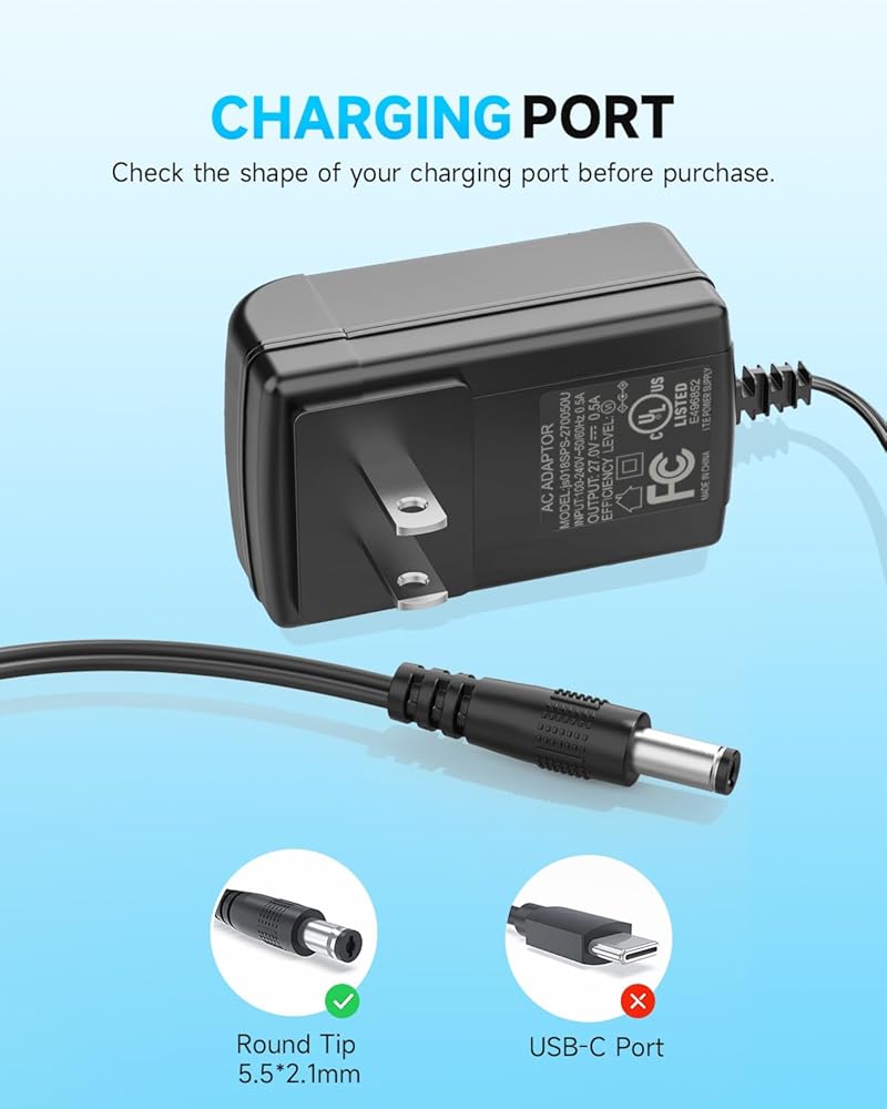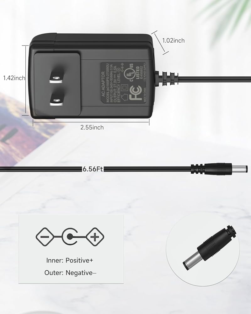 • ✔ 【POWER SPECIFICATION】:Input 110V-240V 50Hz-60Hz ; Output: 27V500mA; 5.9ft/1.8m extra long power cords for Sharper Image; Connector size: 5.5 x 2.1mm.