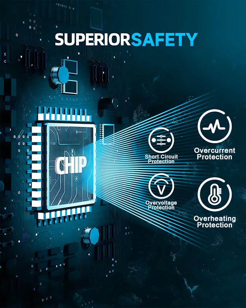 • ✔ 【SAFETY & CERTIFIED】:The charger has tested with Sharper Image and validated to ensure that works with Sharper Image, charger has overcurrent protection / overvoltage protection / short circuit protection and over temperature protection.