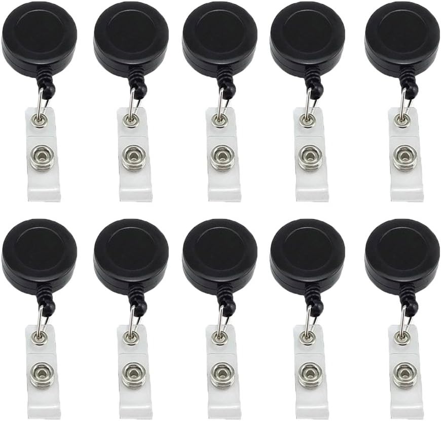 10 قطع من البكرات القابلة للسحب من Gocomcom Honbay مع مشبك حزام معدني، حامل شارة حلقة معدنية ممتازة، حزام شارة لحاملات شارات الهوية وبطاقات المفاتيح (أسود)