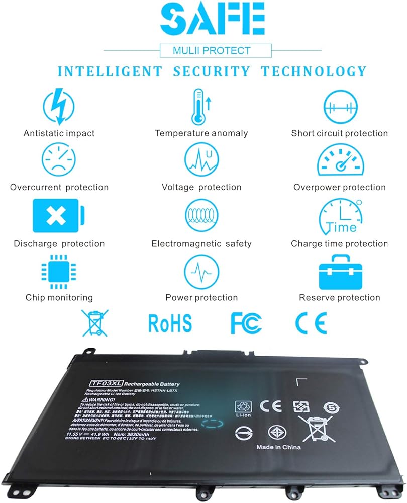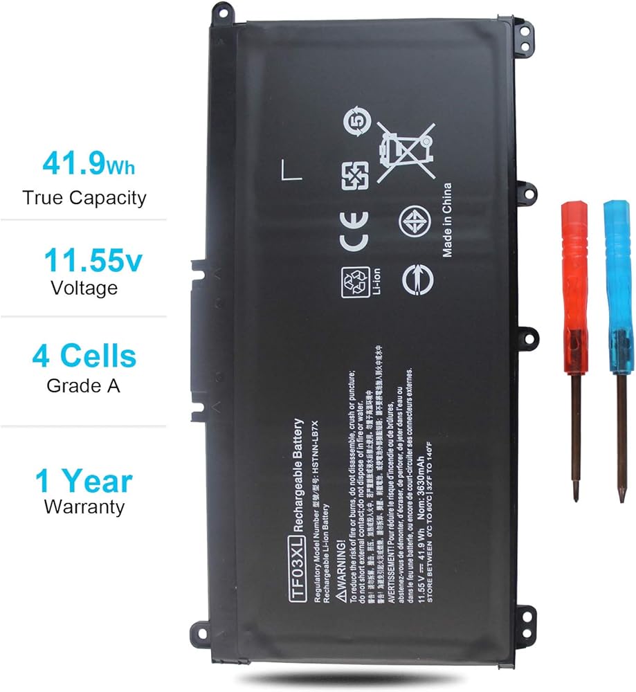 المواصفات: اسم الموديل: بطارية قابلة للشحن TF03XL؛ نوع البطارية: ليثيوم أيون بوليمر؛ الجهد االكهربى: 11.55 فولت؛ السعة: 41.9 وات في الساعة؛ الخلايا: 4 خلايا؛ الوزن حوالي 9 أونصة/0.56 رطل؛ حالة: جديدة؛ تتضمن الحزم: 1 قطعة بطارية كمبيوتر محمول TF03XL (مع مفكين براغي مجانيين لسهولة التركيب) تضمن الخلايا من الدرجة A الشحن السريع واستهلاك منخفض للطاقة.