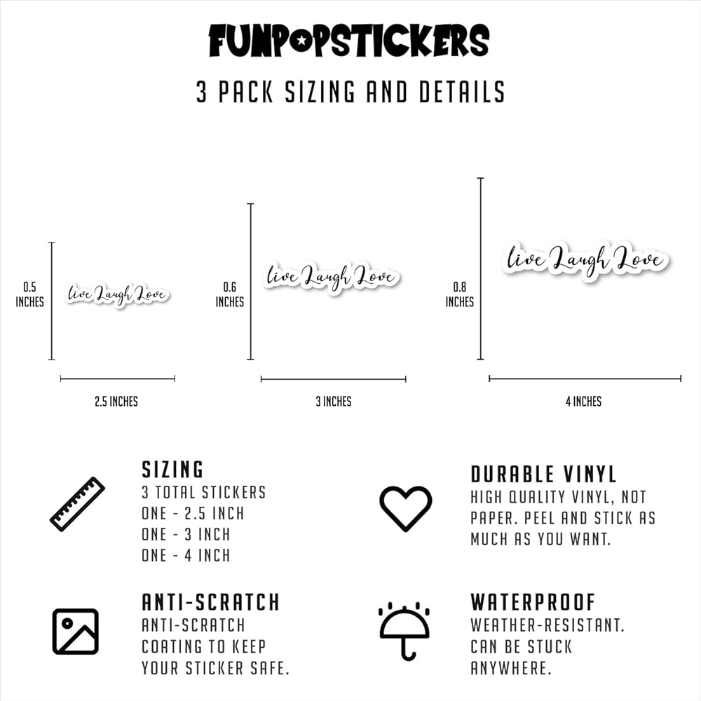 - Live Laugh Love - ملصقات اقتباسات ملهمة - ملصقات للكمبيوتر المحمول - ملصق فينيل مقاس 2.5 بوصة - بسيط للغاية وسهل إضافته إلى الكمبيوتر المحمول والهاتف والكمبيوتر اللوحي والمزيد