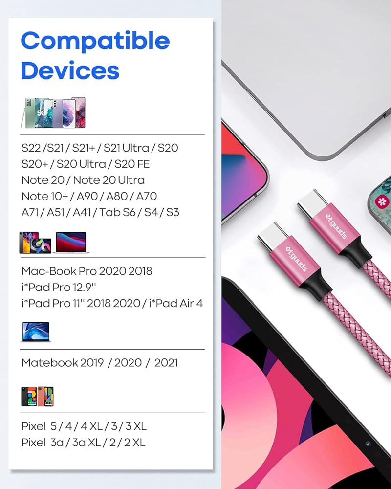 【توافق عالمي】يتوافق كابل USB-C إلى USB-C مع جميع أجهزة USB-C وكاميرا الكمبيوتر المحمول. متوافق مع Samsung Galaxy S23 S23+ S23 Ultra S22 S22+ S22 Ultra S21/ S21+/ S21 Ultra S20/ S20+/ S20 Ultra Note 20/ Note 20 Ultra Note 10/ Note 10 Plus A90 A80 A72 A71 A70. متوافق مع Pixel 2/2XL/3/3XL/3a/3aXL/4/4 XL/ 5/6/6a/7 (راجع وصف المنتج لمزيد من التفاصيل).