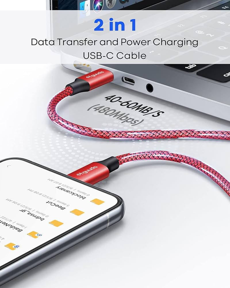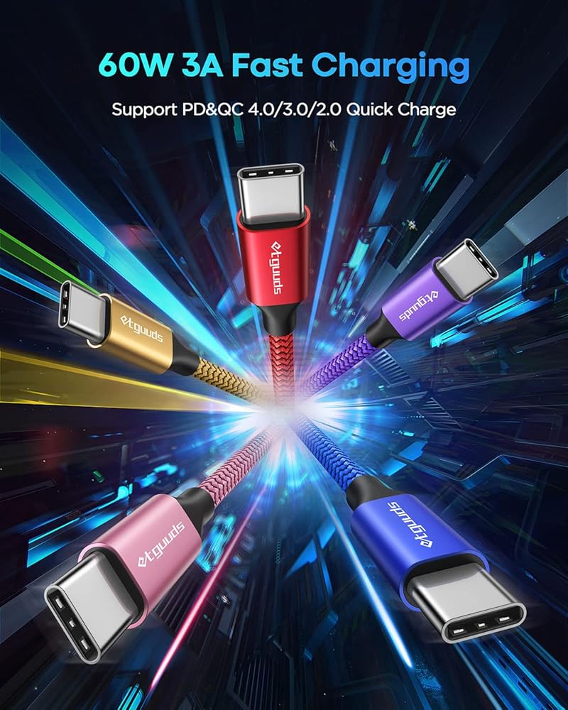 【شحن عالي السرعة 60 وات】يدعم كابل usbc باللون الأحمر/الأرجواني/الوردي/الأزرق/الذهبي إلى usbc الشحن السريع PD 3.0 وQC 3.0، أقصى إخراج يصل إلى 20 فولت/3 أمبير، يناسب محولات USB-C مثل 18 وات/30 وات/45 وات. /60 واط. يدعم USB 2.0 سرعة نقل البيانات حتى 480 ميجابت في الثانية (40~60 ميجابايت/ثانية). ملاحظة: لا يمكن الوصول إلى سرعة USB 3.0 أو Thunderbolt 3، ولا يمكن إخراج إشارة الفيديو أيضًا.