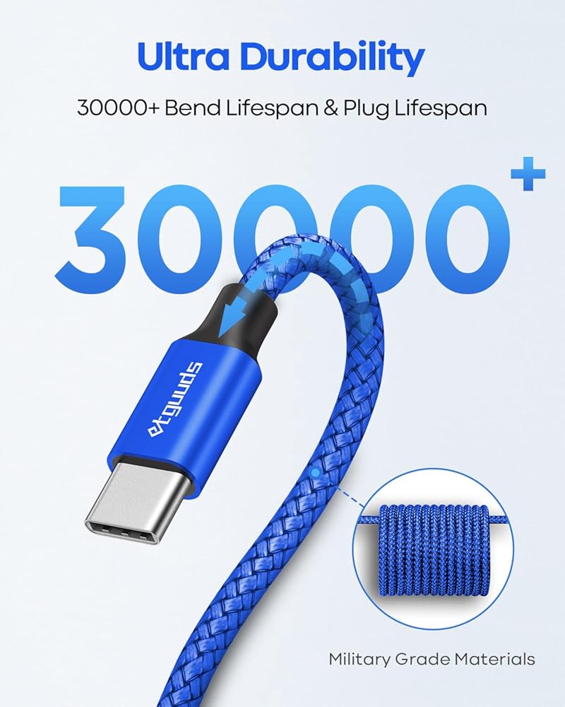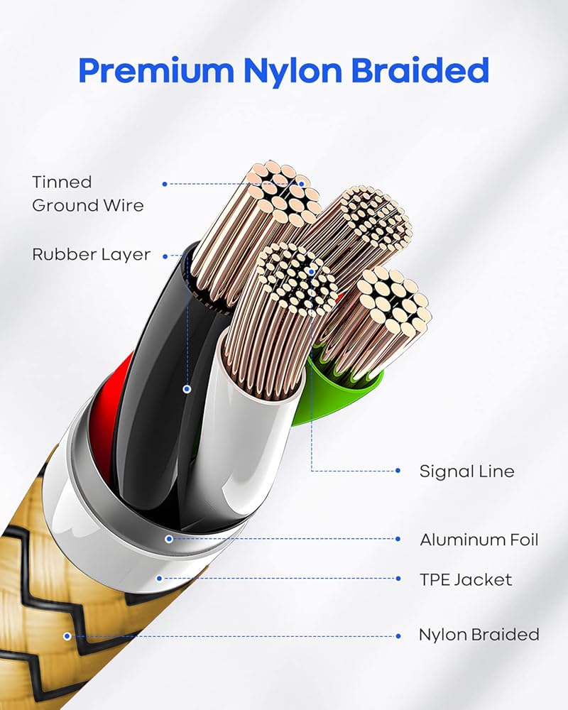 【متينة ومستقرة】مضفر من النايلون الفاخر يضيف متانة إضافية وخالية من التشابك، ويمكن أن يتحمل أكثر من 20000 اختبار الانحناء. الألياف العسكرية القوية تجعلها مرنة. تقنية اللحام بالليزر الفريدة تجعل الموصل يمنع الكسر.