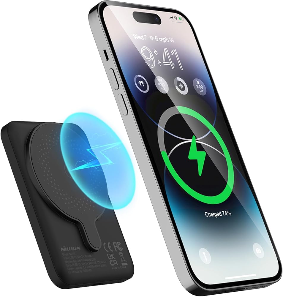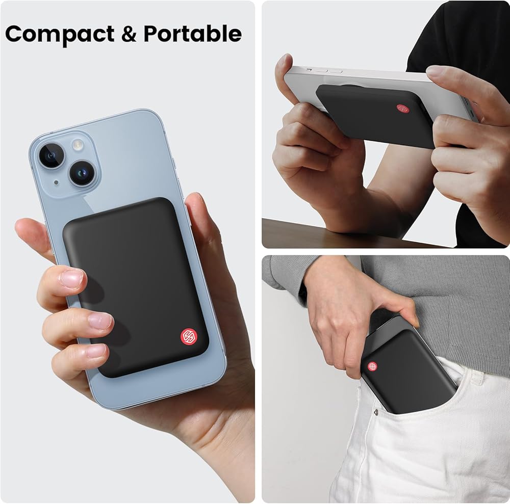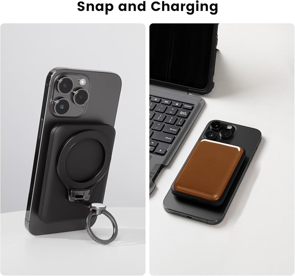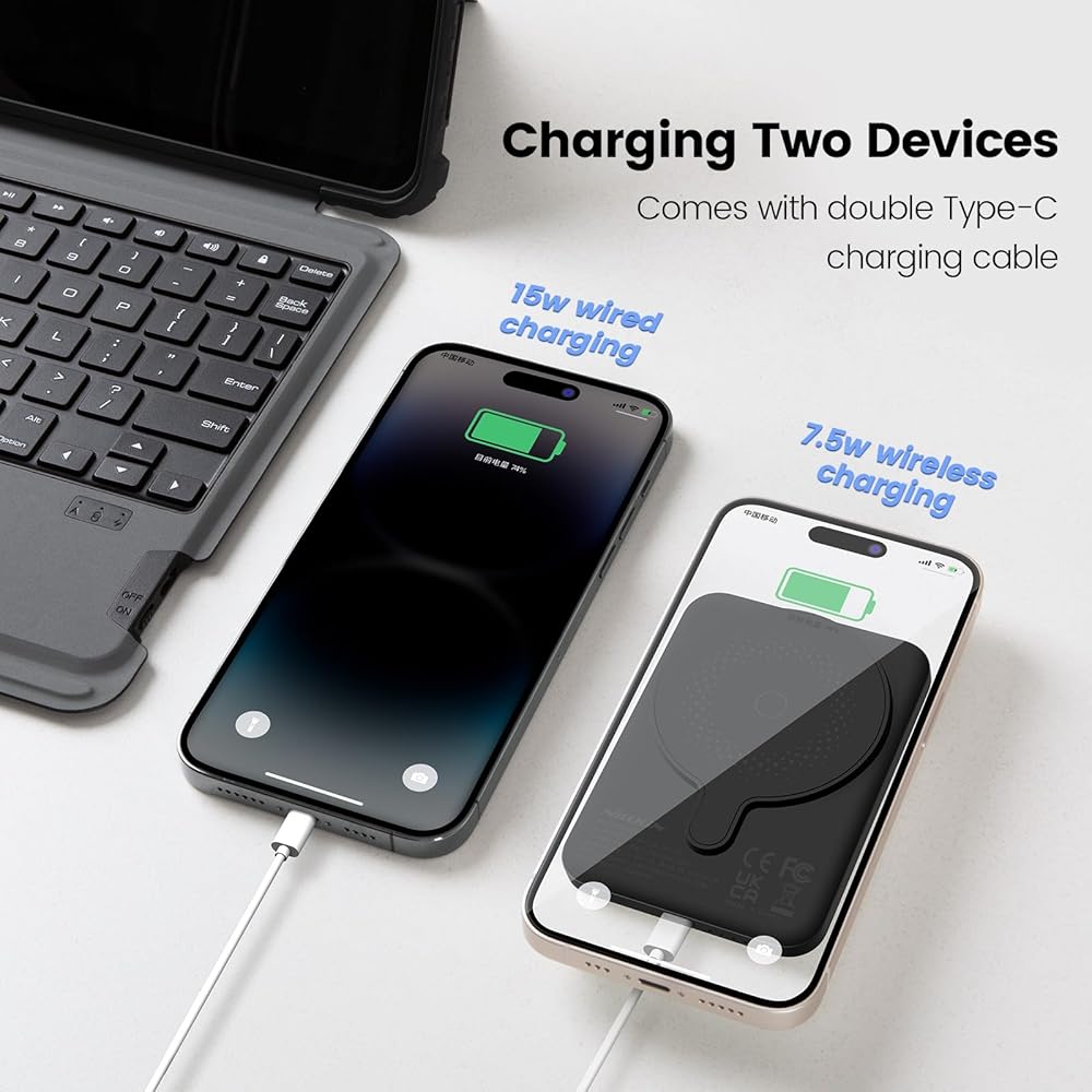 الطريقة المريحة للشحن - مصممة لسلسلة iPhone 15/14/13/12 وحافظات MagSafe. قم بتوصيل بنك الطاقة مغناطيسيًا بالجزء الخلفي من جهاز iPhone الخاص بك وقم بشحنه أثناء التنقل. تحافظ المغناطيسات القوية المدمجة على بنك الطاقة المغناطيسي في مكانه، مما يضمن تجربة شحن لاسلكية سريعة ومستقرة.