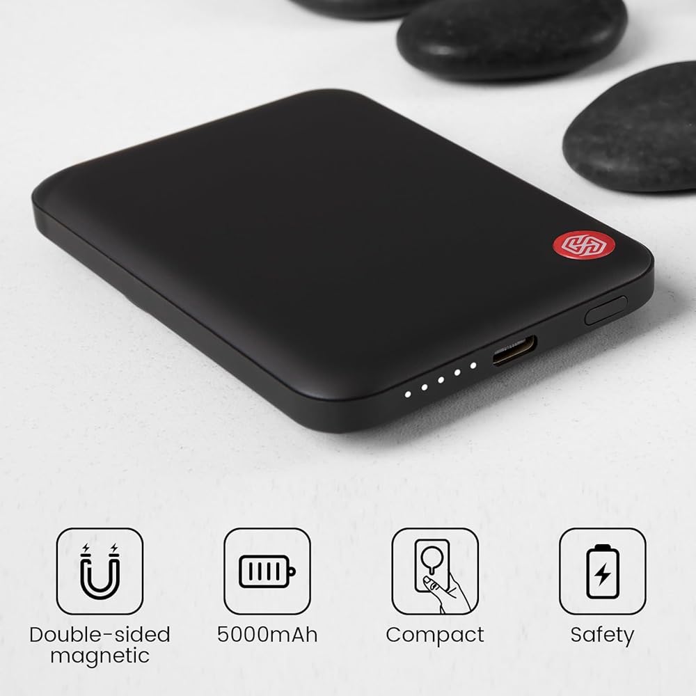 مدمجة ومحمولة - تزن حزمة بطارية PowerStone المغناطيسية 135 جرامًا فقط، ويبلغ حجم المنتج 3.74 × 2.64 × 0.53 بوصة، مما يجعلها بحجم بطاقة الائتمان تقريبًا. إنه نحيف بما يكفي لوضعه في محفظتك أو جيبك، مما يجعله ضروريًا للسفر. لا حاجة لسلك للشحن المحمول أثناء التنقل!