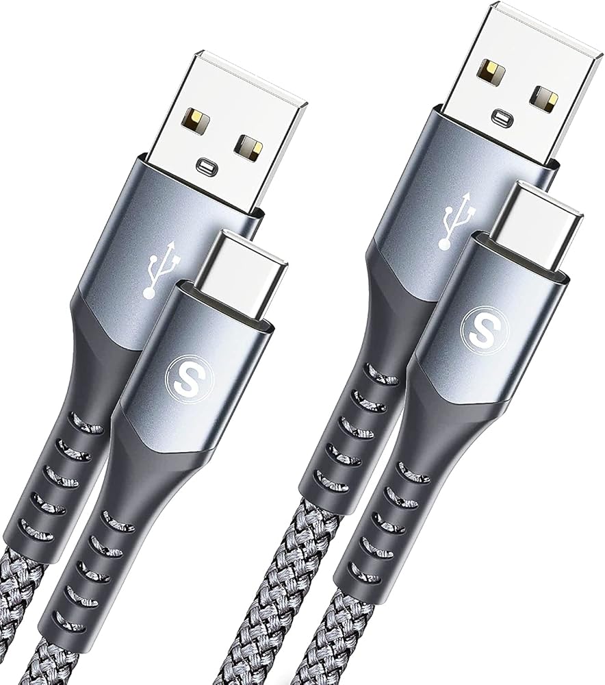 كابل شاحن USB من النوع C من sweguard [عبوتان، 1 قدم] شاحن iPhone 15 سلك مجدول من النايلون لهاتف iPhone 15 Pro Max Samsung Galaxy S23 S22 Ultra S21 S20 S10 Note 20 10 Flip A53 A54 Pixel LG Moto PS5-رمادي