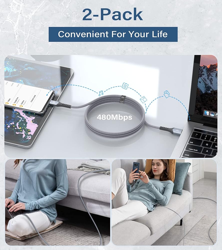 💪 [آخر 10 مرات أقوى ومثالية] مغطى بألياف النايلون المضفرة الثلاثية، مما يجعلها تتمتع بخاصية ممتازة مضادة للالتواء والتآكل. يمكن لكابل USB من النوع C أن يتحمل ما لا يقل عن 40,000 دورة من اختبار الانحناء بمقدار 90 درجة. يبلغ وزن كل كابل حوالي 2.5 أونصة، لذلك من السهل حمله ومريح للاستخدام اليومي في المنزل/المكتب/السيارة/الخارج. مع الطول، يمكنك الاستلقاء على الأريكة أو الأريكة واستخدام أجهزتك أثناء الشحن في نفس الوقت.