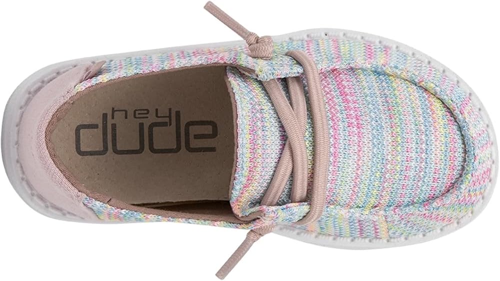 TRENDY DESIGN: The Hey Dude Wendy Loafers feature a textured upper that adds dimension and style to any outfit. The round moc toe design and low-top silhouette are perfect for a casual yet stylish look. With a contrasting heel detail, these kids' loafers add a pop of color and style to any outfit, making them perfect for dressing up or down. These loafers are perfect for your little one who loves to be fashionable and comfortable at the same time.