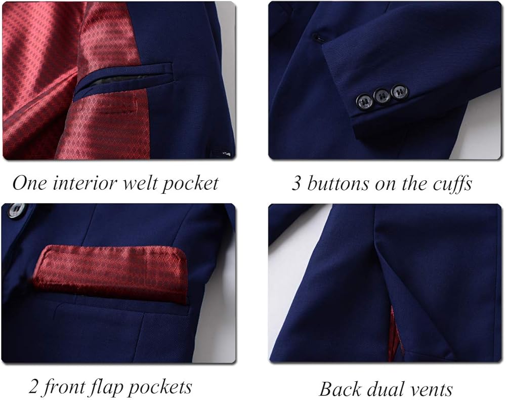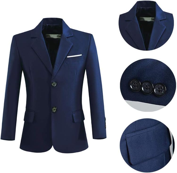 SaiLiiny Boys Suit Jacket Slim Fit Suit Jacket with Lapel Formal Suit Black Blue One Button Children's Jacket