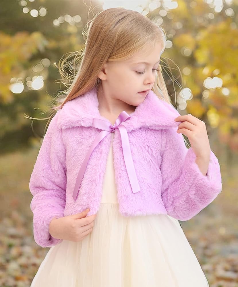 • Versatile layering piece: Effortlessly adding sophistication to any dress, this toddler faux fur coat bolero shrug is a must-have for parties, weddings (as a flower girl jacket), formal events, fall or winter holidays, and casual wear. Ideal as a stylish toddler fur jacket or a cozy toddler fur shawl, it also includes options for fancy jackets for girls, making it the perfect choice for various occasions.