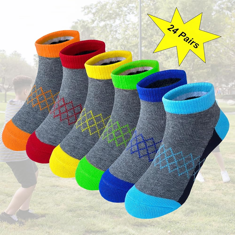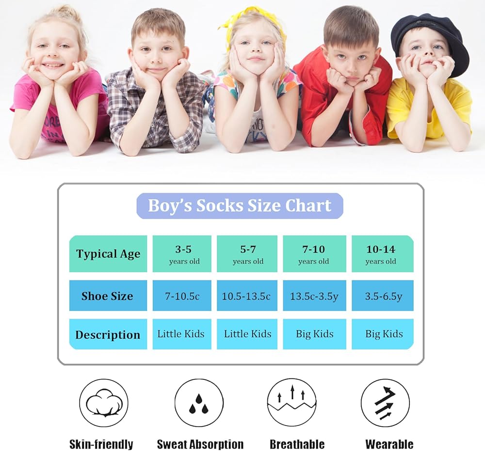SOFT & BREATHABLE: boys ankle socks are made of high-quality fabrics(75% cotton, 20% polyester and 5% spandex) to increase comfort and abrasion resistance. Lightweight socks maximize dryness,protect the skin of your kid feet
