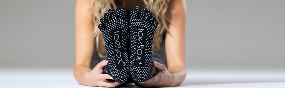 About Toesox: Our story unfolded over 10 years ago in a yoga class. We saw slipping feet that needed extra grip, clean soles that needed protection, and cold toes that needed warmth. ToeSox was born. From a small garage in Los Angeles, we created the original five-toe grip socks to help people during barefoot fitness classes like yoga, Pilates, barre and dance. To this day, our intention is to create products that enhance and support natural movement regardless of the activity. Whether holding plank a little longer, staying grounded in Relevé, settling deeper into Warrior II, or running for miles blister free, we've got you covered.