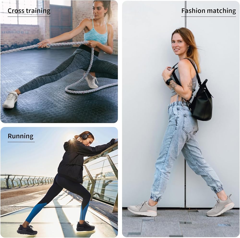 • 【مانعة للانزلاق ومتينة】: تتميز أحذية الجري النسائية هذه بنعل خارجي مطاطي بسمك 3.5 مم، مما يحسن الاحتكاك والمتانة بشكل كبير. آمن وحر للمشي في كل مكان حتى في الأيام الممطرة. والنعومة التي توفر لك الدعم والأمان. إضافة أخاديد مرنة توفر حاجزًا كافيًا بين القدمين والأرض. آمن ومجاني للمشي في كل مكان حتى في الأيام الممطرة.