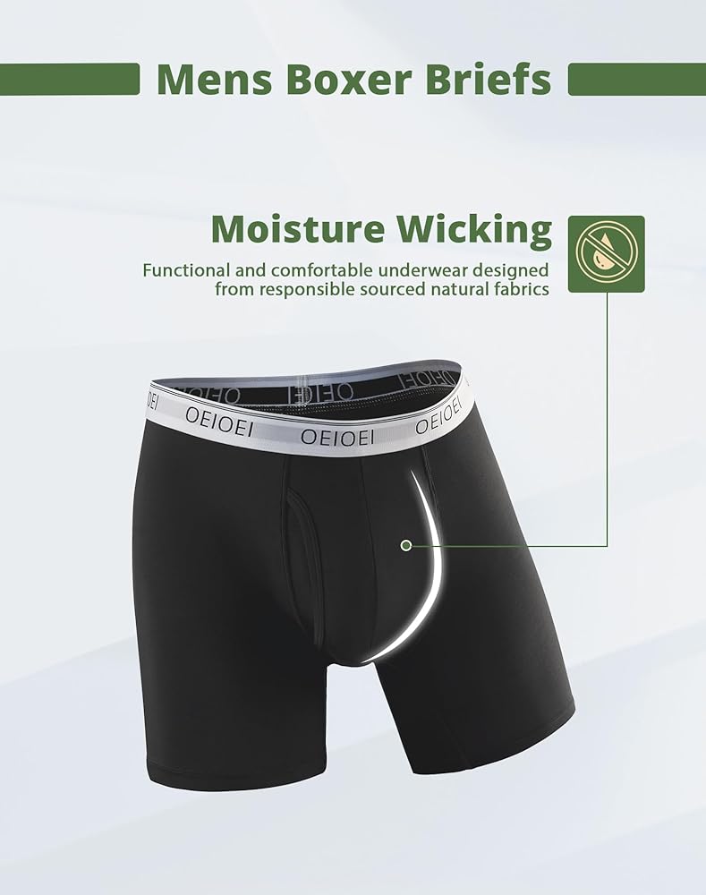 ملابس داخلية بوكسر للرجال من الخيزران رايون الماصة للرطوبة، 3 قطع