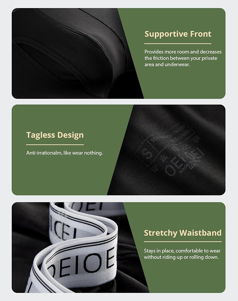 • مساحة واسعة: تصميم القطع ثلاثي الأبعاد في منطقة ما بين الساقين مناسب للارتداء اليومي والرياضي. ملصق مطبوع في الخلف لراحة خالية من العلامات. ارتداء ملابس داخلية مضادة للاحتكاك للرجال، يمكنك التمتع بشعور الحرية أثناء العمل أو ممارسة الرياضة