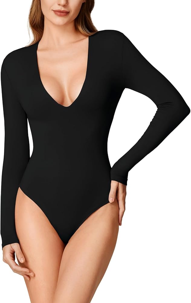 ☀ أزياء نسائية: هذا السالوبيت ذو الأكمام الطويلة هو خزانة ملابس أنيقة تتميز برقبة على شكل حرف V مثيرة وقصة منخفضة لإبراز فتحة صدرك بملاءمة جذابة. مناسبة للصدر الأكبر والأنوثة تمامًا، قمصان داخلية مثيرة مثالية للنساء اللاتي يخرجن.