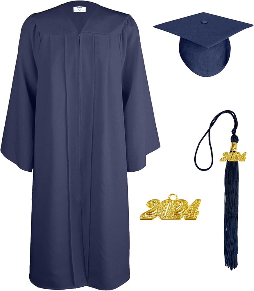 What You Get: 1 Graduation Gown only + 1 Graduation Cap+ 1 Graduation Tassel with removable 2024 year charms (If you received the wrong year charm, please contact us to arrange for you.)