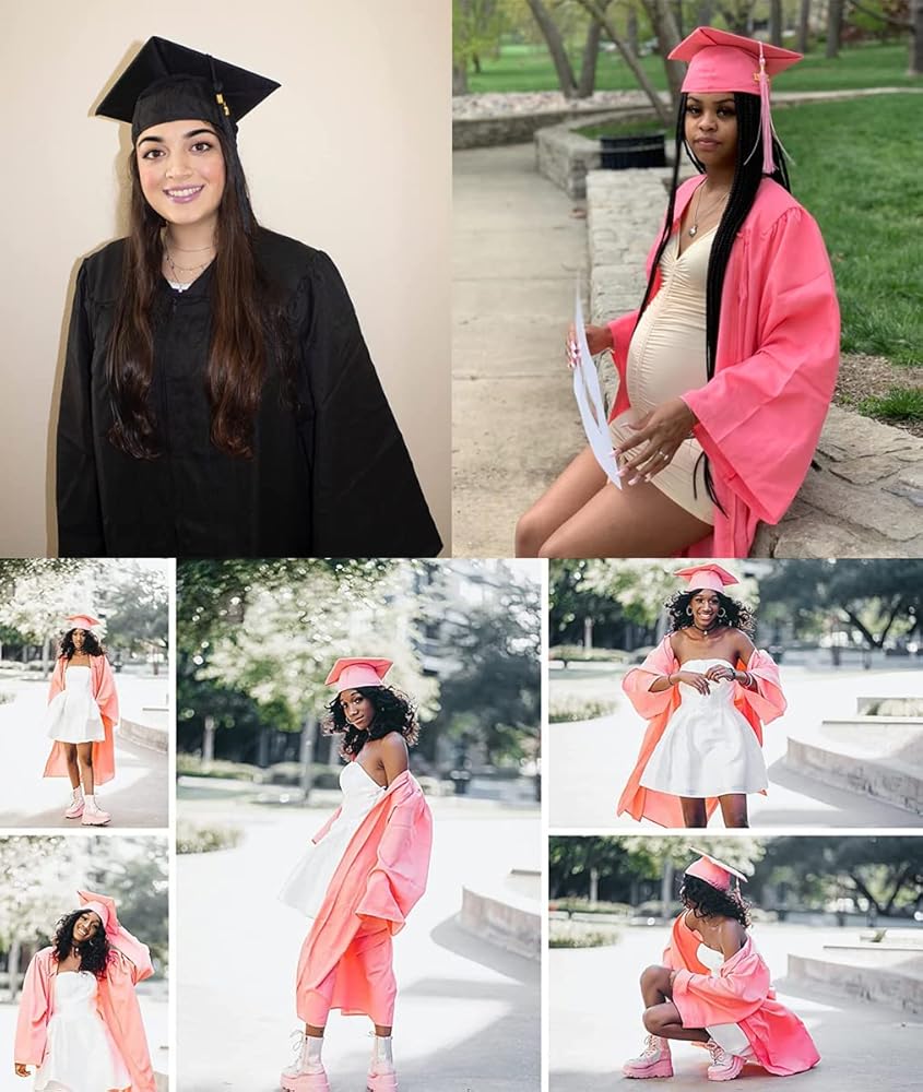 Tnghui has designed this unisex graduation uniform for all high school and college students who have just completed their studies. 12 colors are available currently for choice Loose-fitting Style sized by height and chest New design with Gathering back and shoulder,Front pleats and side pleats and Open sleeves Hidden Zip closure is strong and easy to put on and off Top of Graduation Cap measures 9"x 9" With elastic bands adjusting range of 19"-23",one cap size fits all the graduation gowns Blank paper to write down your name and date to commemorate Graduation day . If you are not satisfied with the soft and durable fabric of your graduation gown, or if it does not suit you, please let us know We try our best to give you the perfect shopping experience!