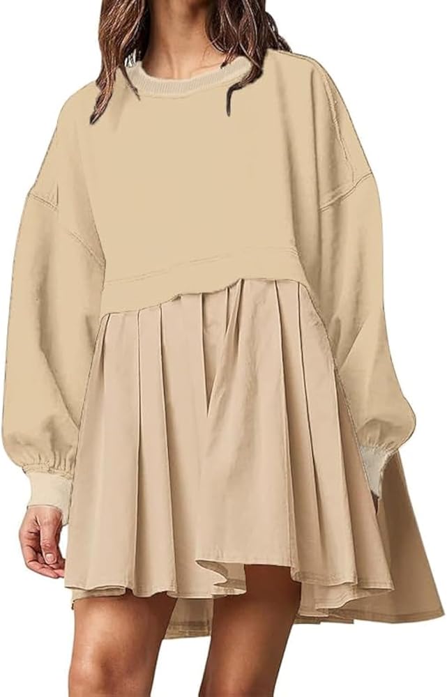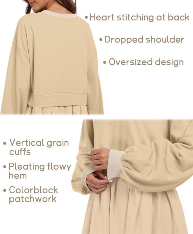 🎀قماش مريح: مصنوع من مزيج عالي الجودة من القطن والبوليستر، هذا الفستان القصير للسيدات ذو الأكمام الطويلة ناعم للغاية ومريح وصديق للبشرة ومتين. فستان سويت شيرت نسائي كبير الحجم يبقيك دافئًا ودافئًا مع توفير تجربة ارتداء غير رسمية فضفاضة. فستان سويت شيرت نسائي كبير الحجم، فستان قصير كاجوال فضفاض مناسب للنساء والفتيات المراهقات، ستائر بالطريقة الأكثر إغراء ويمكنك بسهولة الحصول على مظهر أنيق
