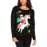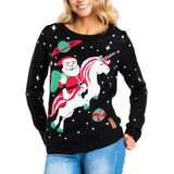 Looking for that perfect mystical Ugly Christmas Sweater this holiday season? This Unicorn Christmas Sweater is the perfect cute xmas sweater to wear this holiday season. This Christmas Sweater features a dark black background with Santa Claus riding a unicorn.