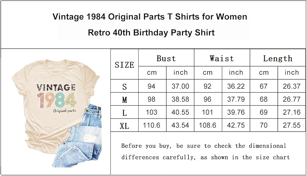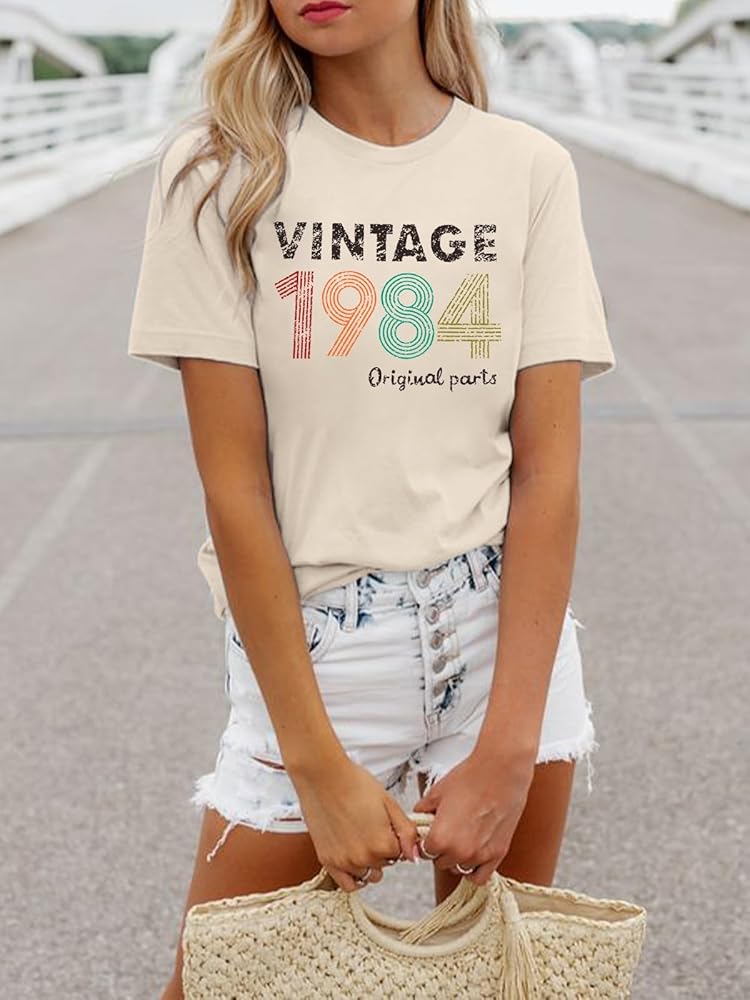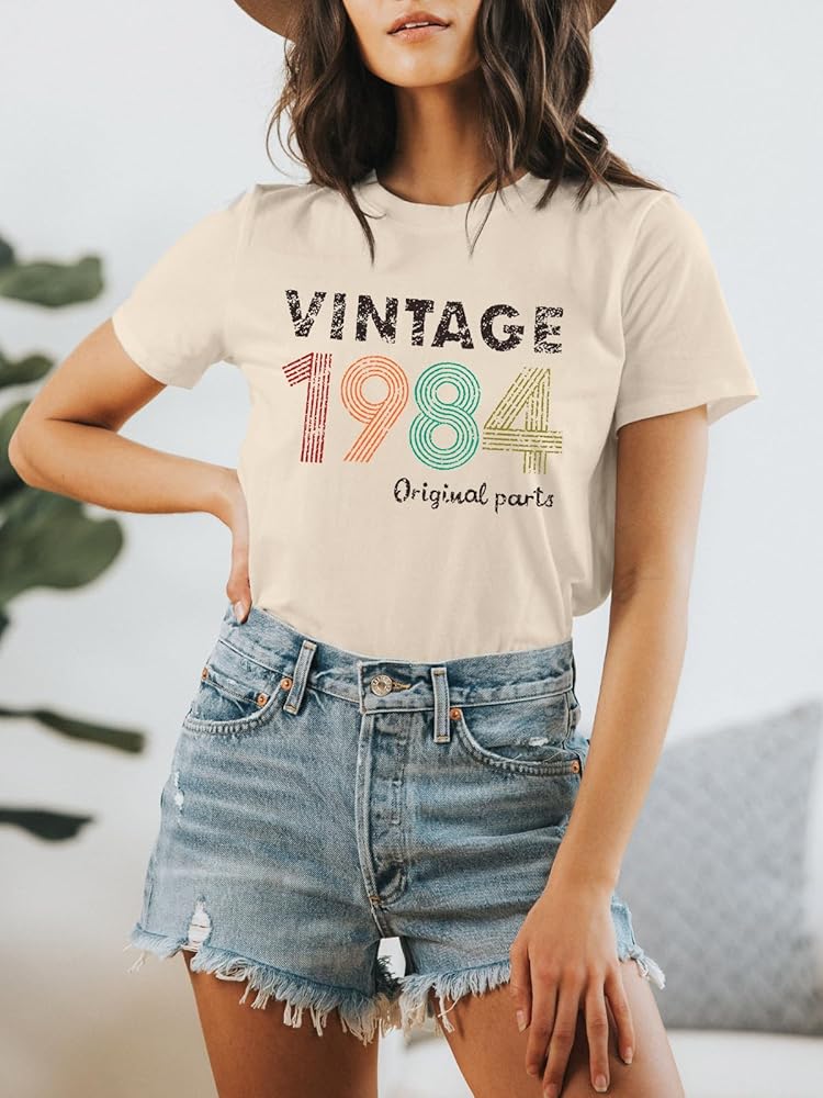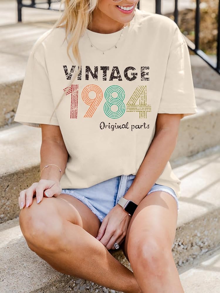 الميزات: تي شيرت عتيق 1984 للنساء، قمصان هدايا عيد الميلاد الأربعين للنساء، بلوزة قميص مطبوعة عليها حروف أصلية عمرها 40 عامًا، ملابس علوية غير رسمية لحفلات أعياد الميلاد.