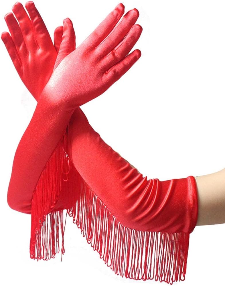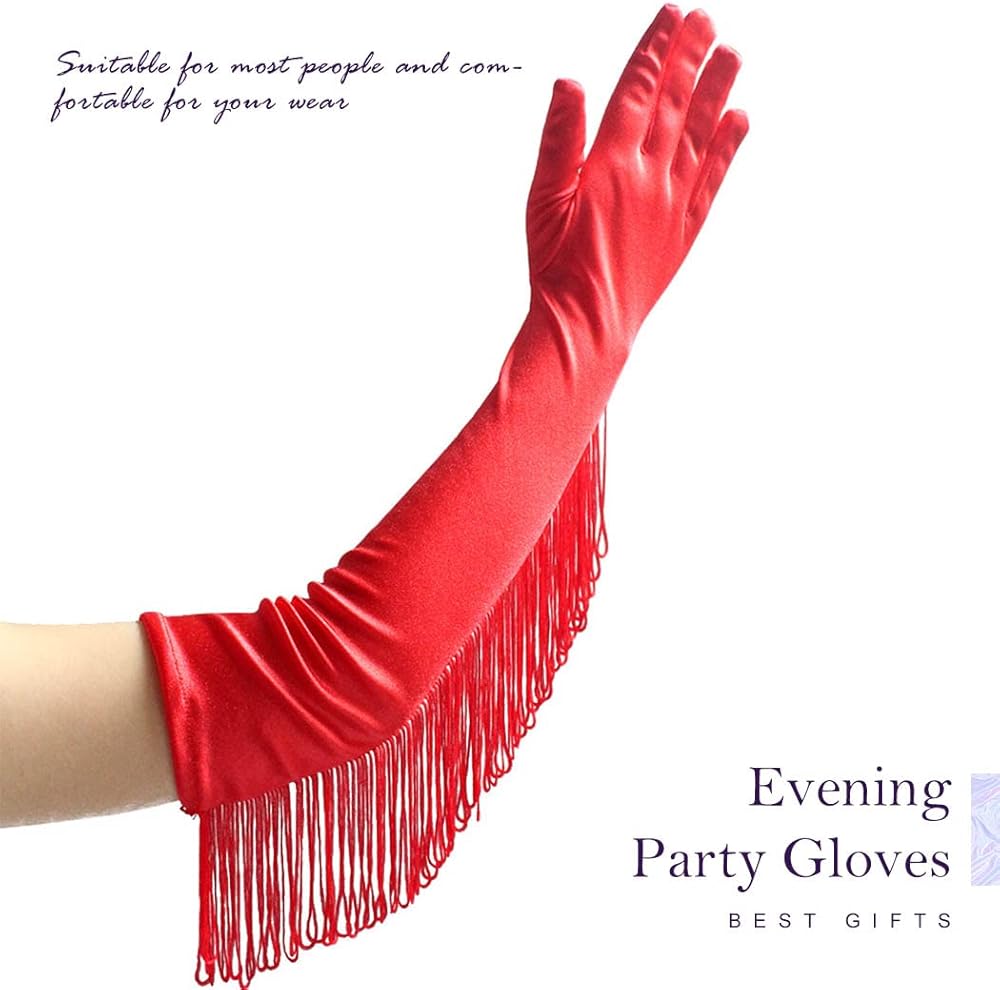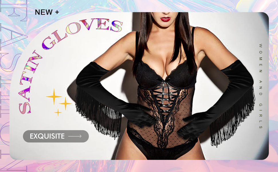 Satin fringe gloves is the best gifts for sending to your families, friends and wearing it at a party is definitely a very eye-catching one!