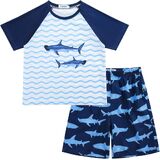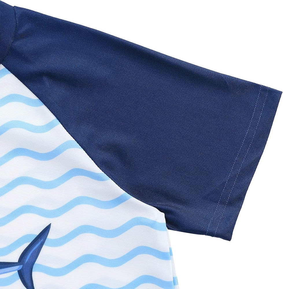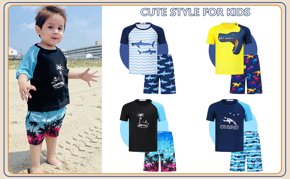 【🐬 ملابس خفيفة الوزن ومريحة لقضاء العطلات على الشاطئ】مجموعة ملابس السباحة للأولاد هذه وواقي الطفح الجلدي للأطفال بأكمام قصيرة مثالية لقضاء عطلة طفلك على الشاطئ أو يوم حمام السباحة، لأنها خفيفة الوزن ومريحة وسهلة الارتداء والحمل.
