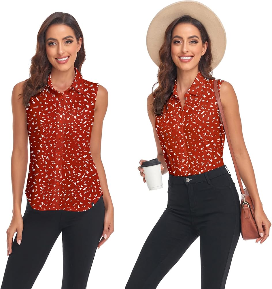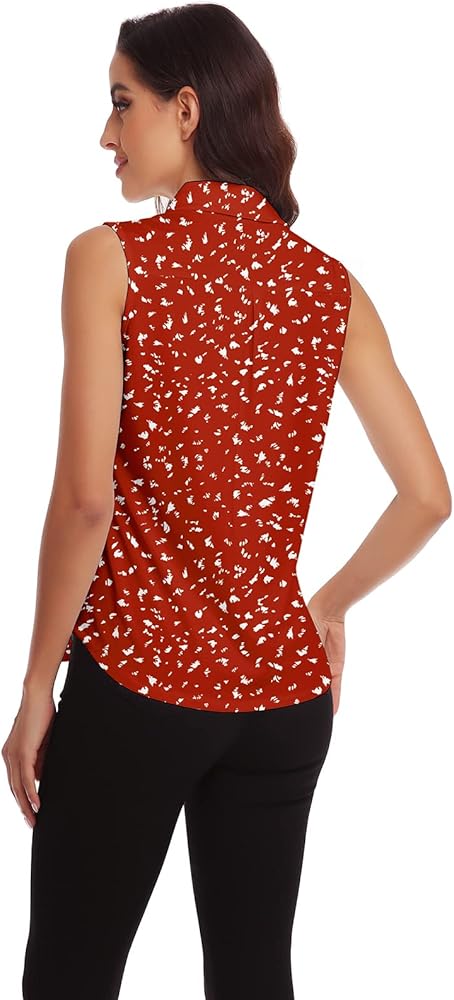 【تصميم ملابس جولف للنساء】قمصان بياقة بدون أكمام/قميص تنس بدون أكمام مع زر، تصميم مطبوع/أزهار، يبرز بين قمصان البولو التقليدية ذات الألوان النقية. مقاس محيطي يمنح قميص بولو الجولف النسائي/قميص بولو بدون أكمام مظهرًا نحيفًا وجذابًا .