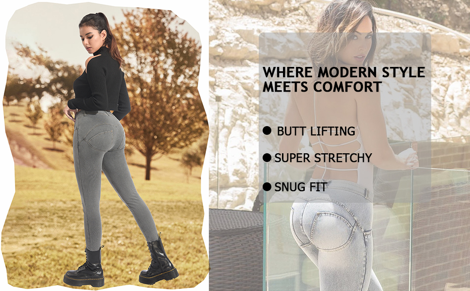 - 【تمدد】- مصنوع من قماش الدنيم عالي المرونة مع أقصى قدر من المرونة. تقنية الضغط تجعلك تشعر بالدعم والإطراء.
