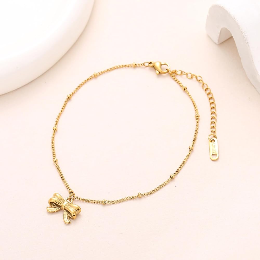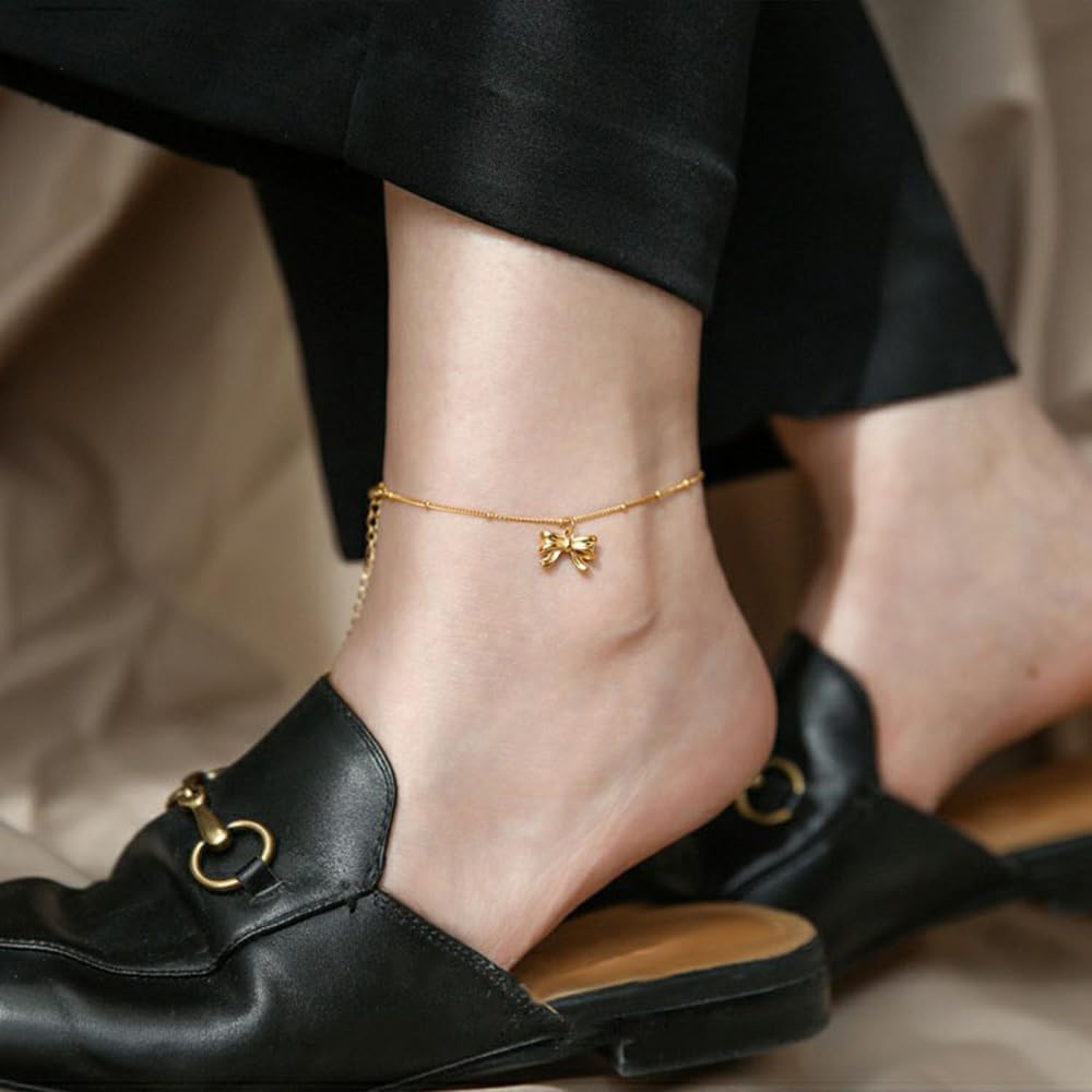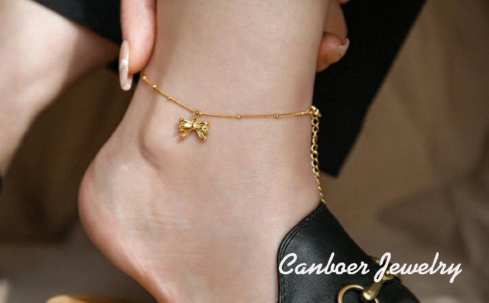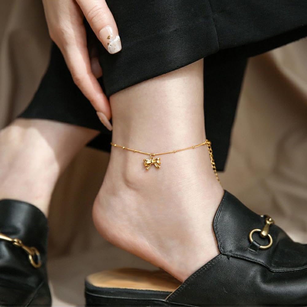 Cute Bow Ankle Bracelet:This danity gold chain ankle bracelt with cute bow charms is suitable many occasions,etc party, summer,vacation,beach,wedding, ceremony, graduation, dating.