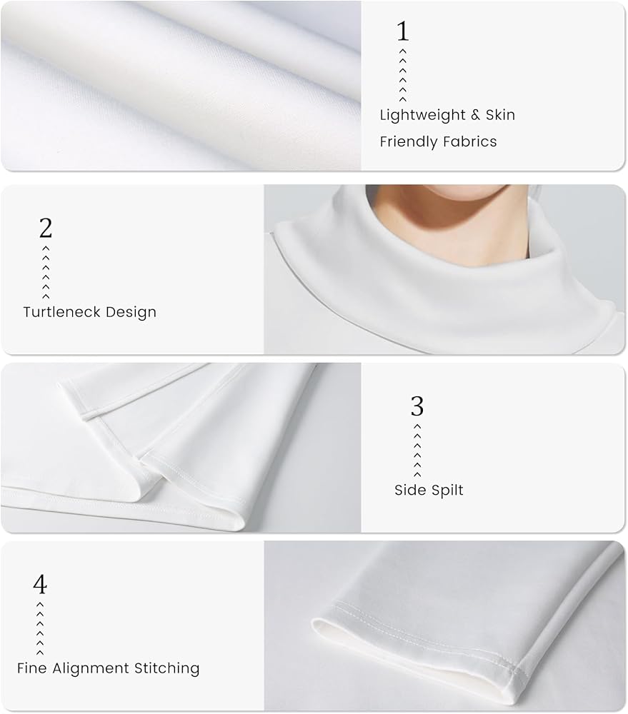 - المزايا: طول متوسط، رقبة مرتفعة، لون ثابت، فتحة جانبية، خياطة دقيقة