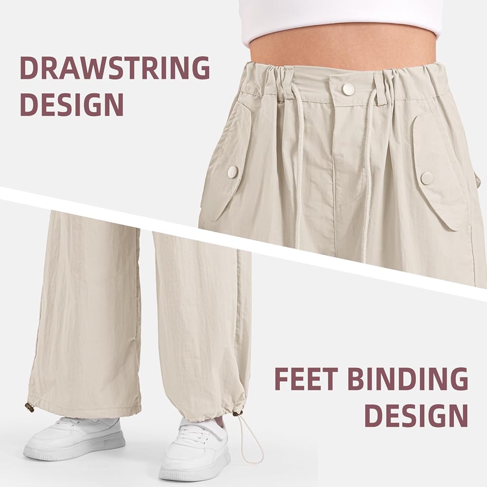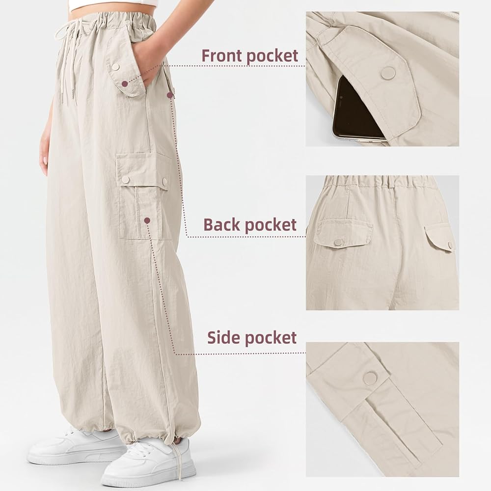 خفيفة الوزن ومسامية: سراويل كارجو للفتيات مصنوعة من نسيج مرن عالي الجودة، وناعم وصديق للبشرة، ومريحة للارتداء في أربعة مواسم