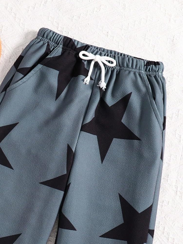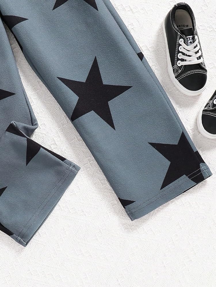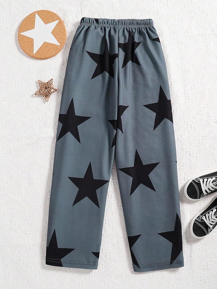 بنطال WDIRARA للفتيات ذو طباعة نجوم ورباط وخصر واسع مع جيوب