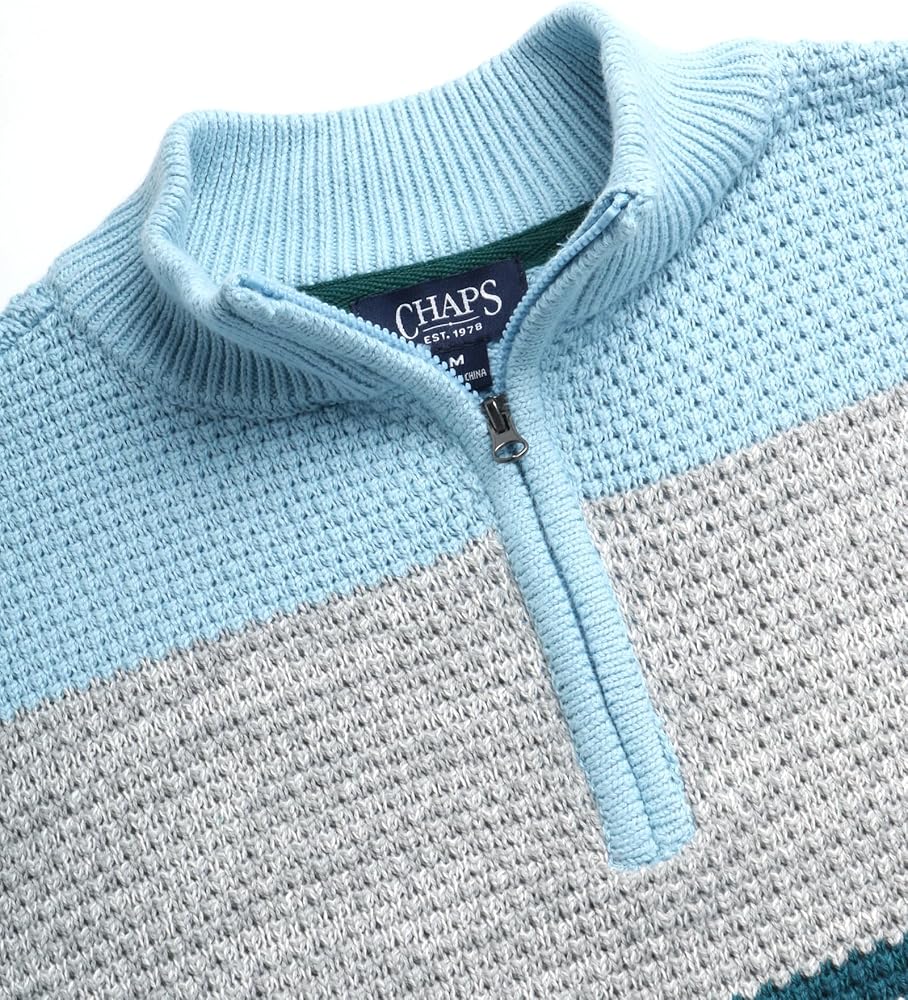 OFFICIALLY LICENSED CHAPS: Boys Mid-Weight Quarter Zip Pullover Sweater; Ever relevant, always relatable, Chaps remains true to our original spirited tradition