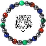 سوار مطاطي من الهيماتيت عين النمر باللون الأحمر والأخضر والأزرق، سوار من الأحجار الكريمة الطبيعية 8 مم، أساور ساحرة من حجر الشفاء 7.3 بوصة، أساور مصنوعة يدويًا للنساء (عين النمر والهيماتيت)