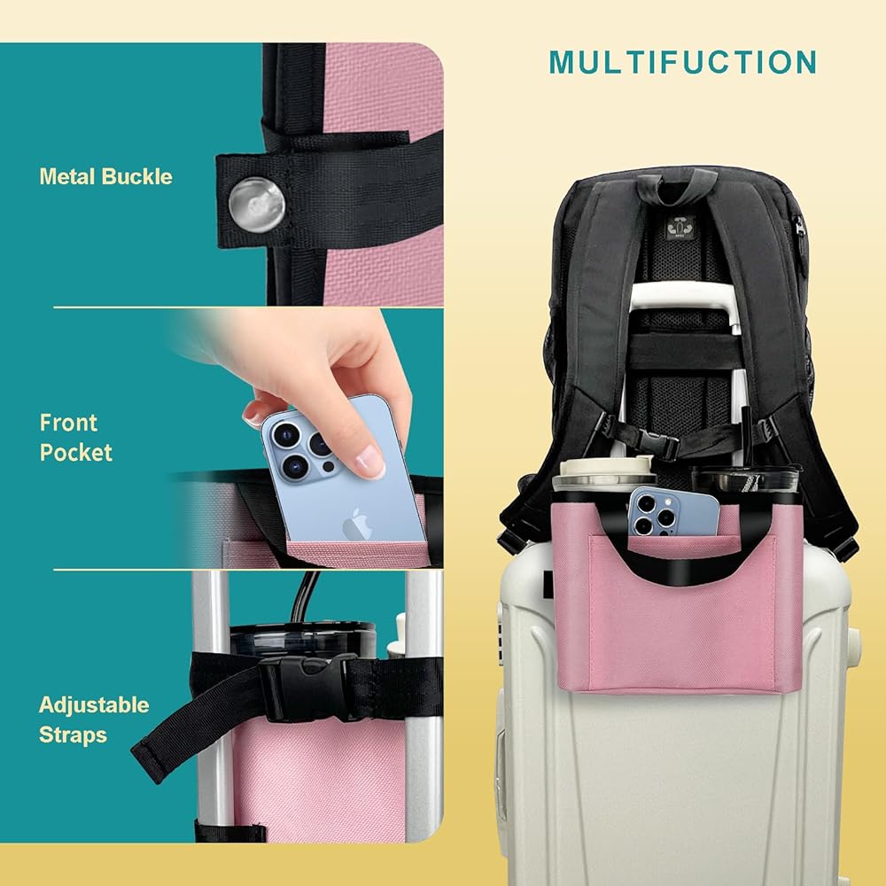 🧊متعدد الاستخدامات وسهل الاستخدام: ثبته بأمان على مقبض الأمتعة الخاص بك باستخدام حزام وإبزيم قابلين للتعديل، وستكون جاهزًا للانطلاق! انها بسيطة جدا وسريعة. ستحبه! بالإضافة إلى ذلك، فهي لا تقتصر على الأمتعة - يمكنك استخدامها كحامل أكواب لعربة الأطفال أو حتى تعليقها على حقيبة اليد الخاصة بك!