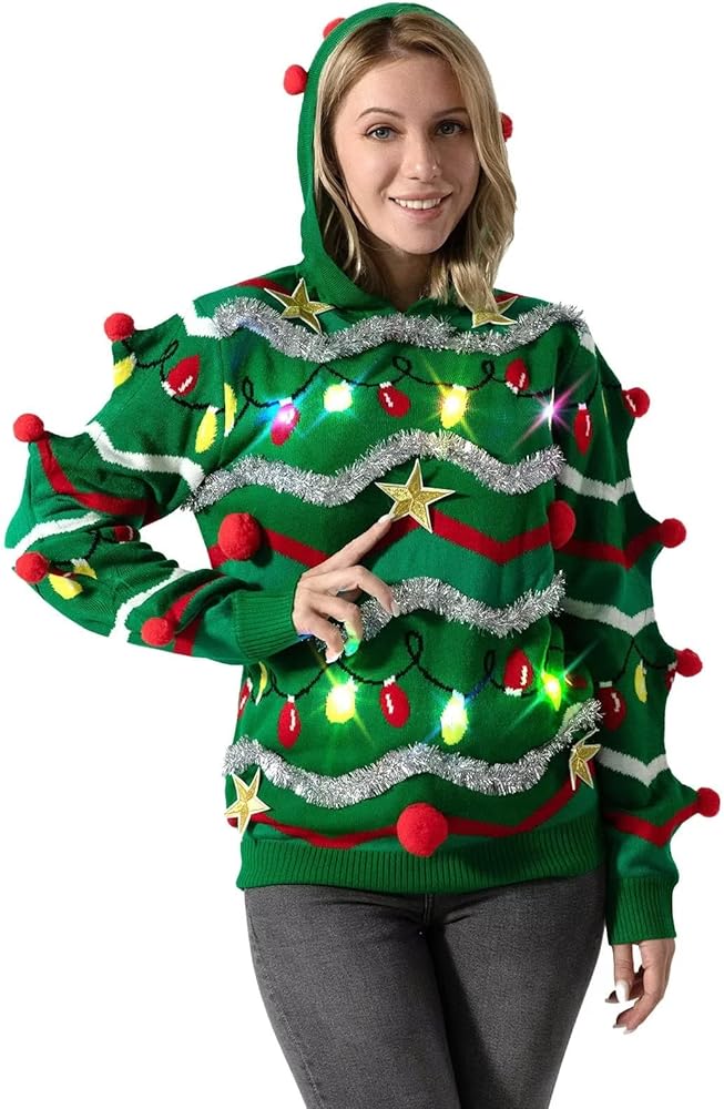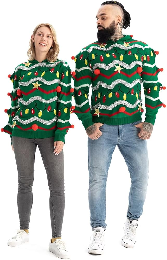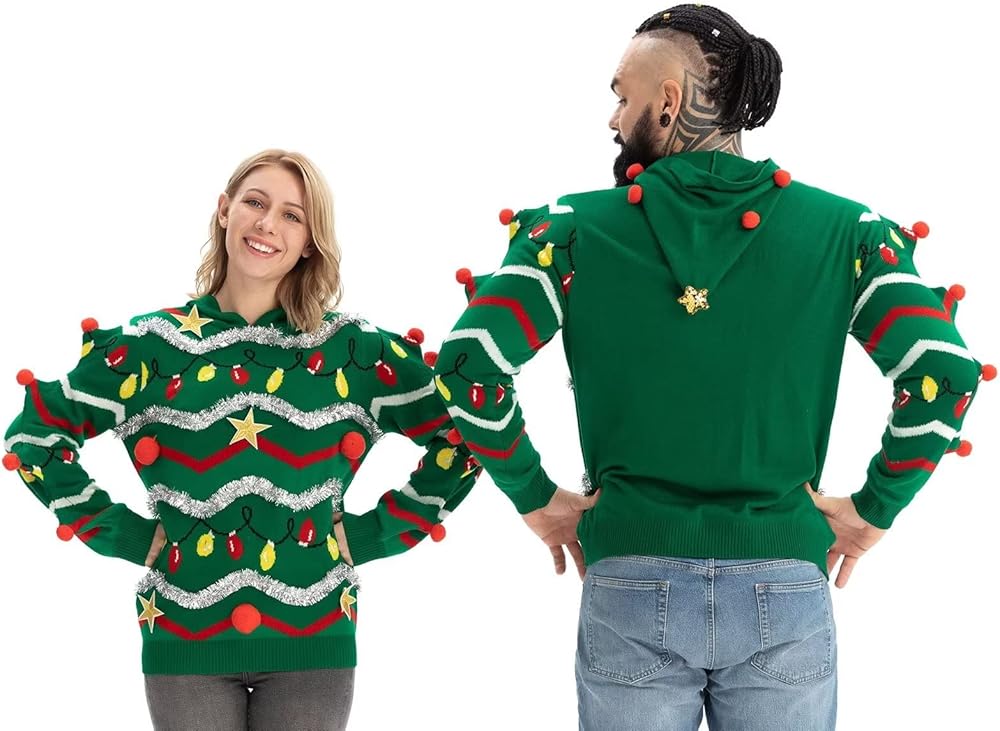 • نمط هوديي متعدد الاستخدامات. لقد صممنا سترة عيد الميلاد المحبوكة المبتكرة بقصة مريحة ومتعددة الاستخدامات لأي مناسبة خلال موسم الأعياد. ارتديه مع الجينز لحفلة أو مناسبة خاصة أو اجعله كاجوال مع زوج من السترات للاسترخاء في المنزل. السترة ذات القلنسوة القبيحة والمضحكة هي القطعة الأساسية المثالية لعيد الميلاد