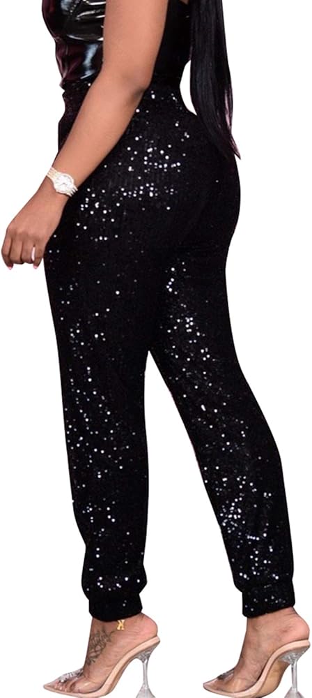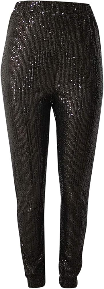 - أزياء المرأة الترتر السراويل عالية الخصر السراويل الطويلة عارضة.