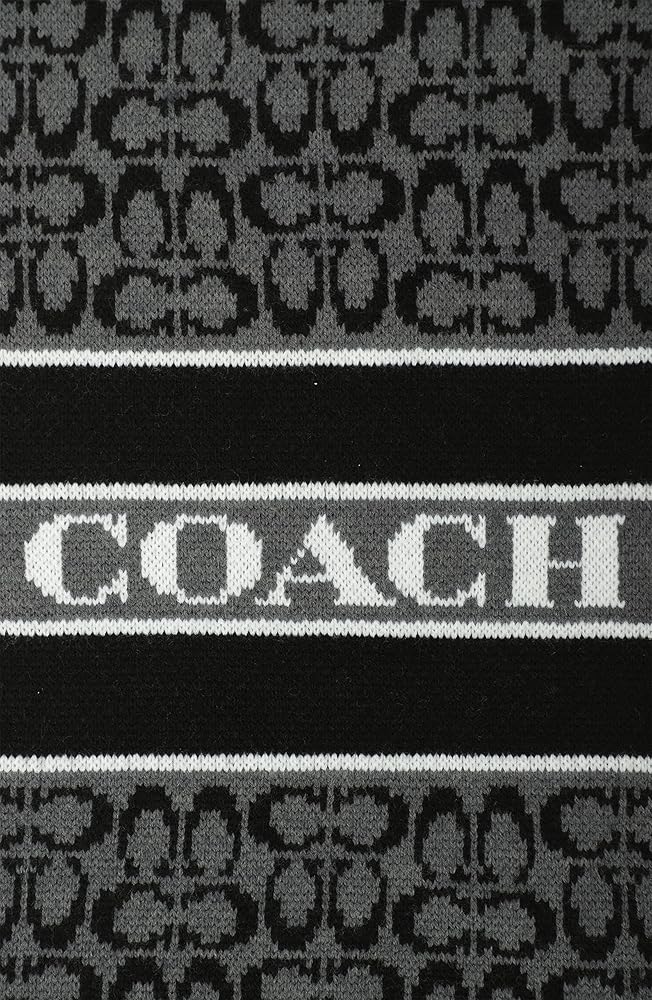 EDITOR'S NOTES: This cold weather, cozy wool-blend scarf is woven with the Coach Signature for heritage style. It's finished with soft rib-knit trim and sporty stripes featuring the Coach name.