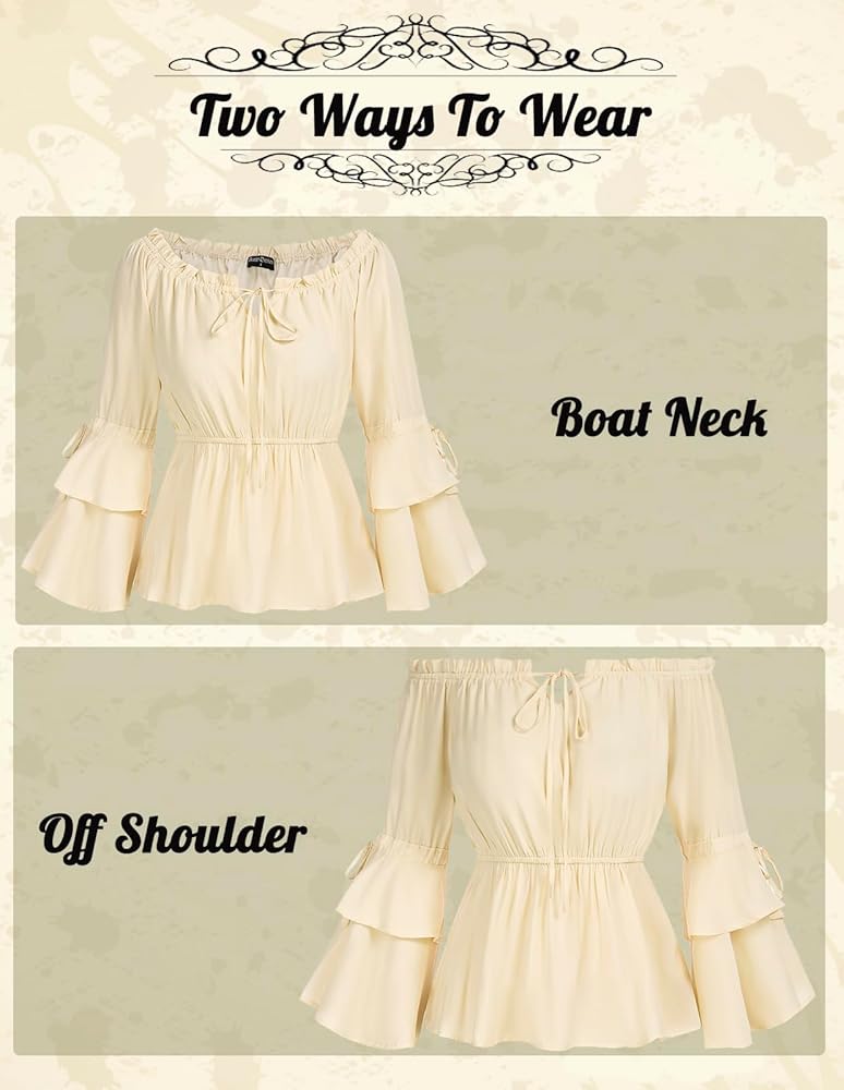 • 【مناسبات متعددة】تصميمات بسيطة ولكنها فريدة من نوعها تجعل البلوزات الفلاحية للنساء مثالية لأي مناسبة مثل مهرجان عصر النهضة، أو الهالوين، أو أزياء القرصان، أو الخروج غير الرسمي أو في عطلة نهاية الأسبوع.