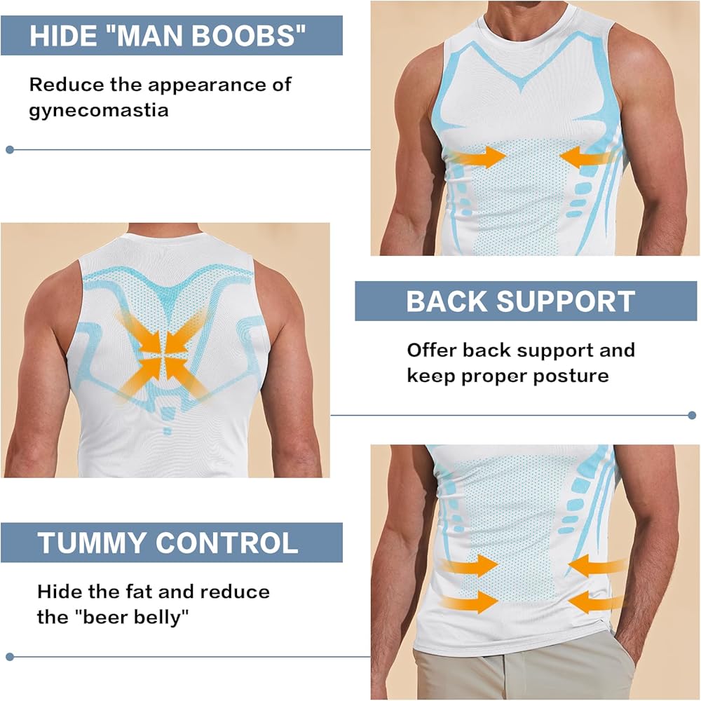 • 【قميص بدون أكمام على شكل أيوني مطور】تعتمد السترة ذات الشكل الأيوني للرجال تقنية الضغط المتقدمة لتوفير ضغط شامل من الصدر إلى البطن. تم تصميم الجزء العلوي المضغوط من Gynecomastia لتشكيل صدرك وخصرك وبطنك، وتقليل ظهور التثدي أو "ثدي الرجل".